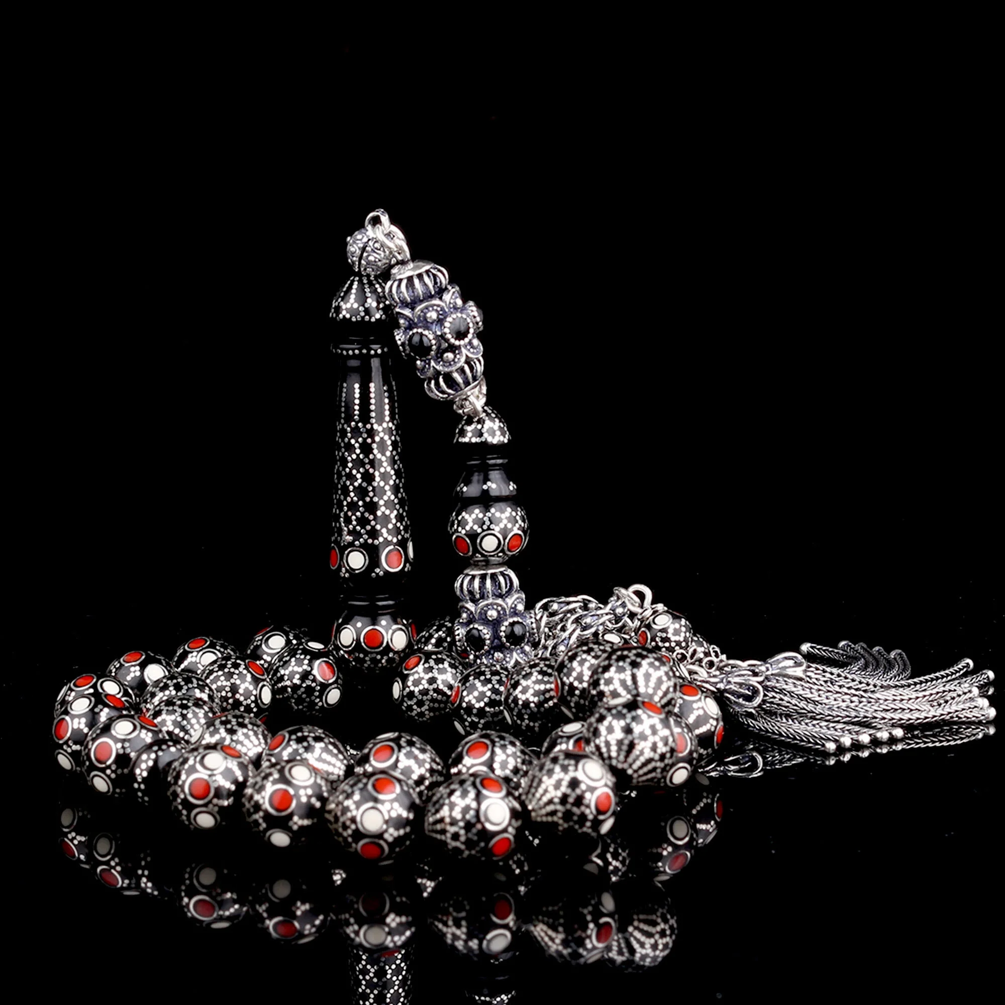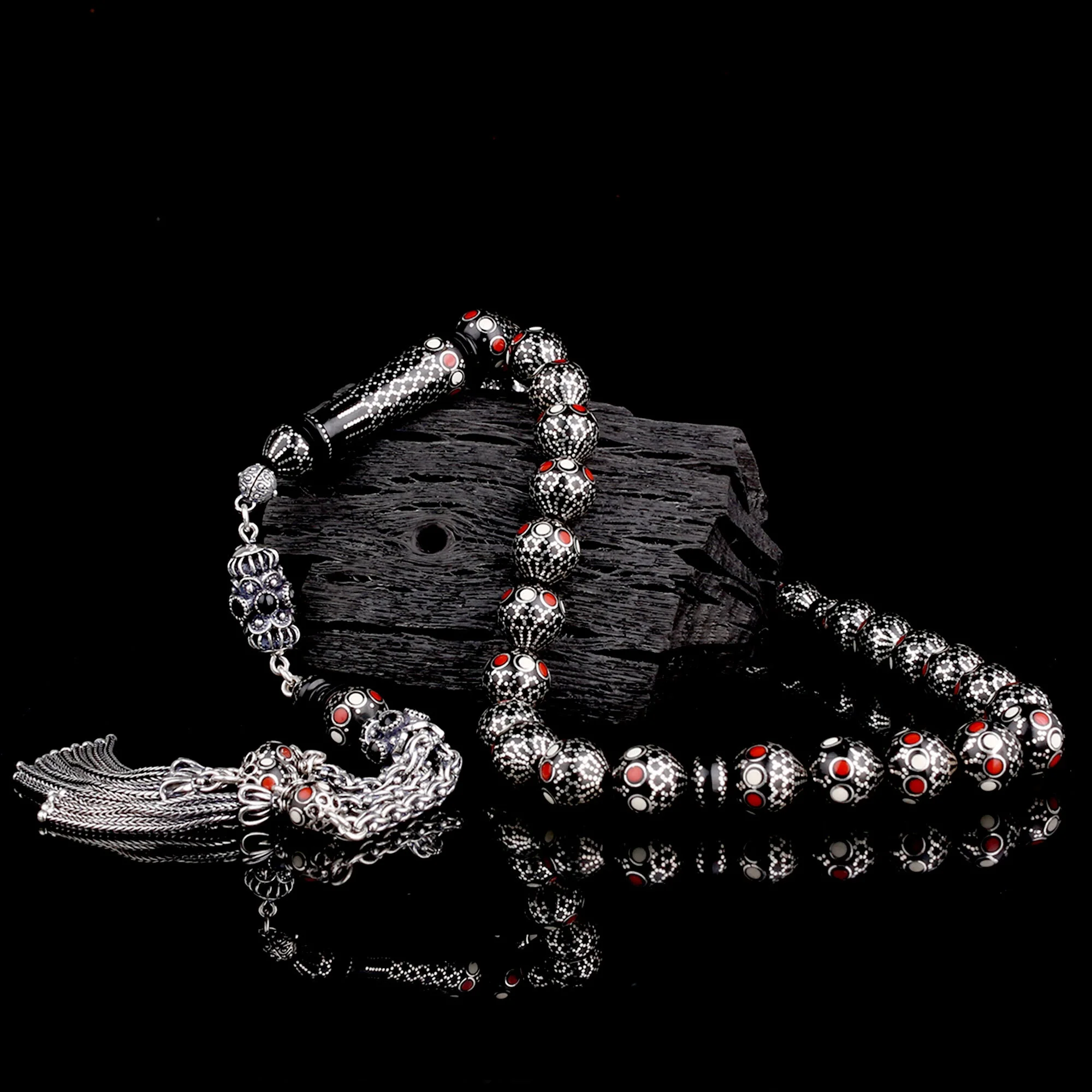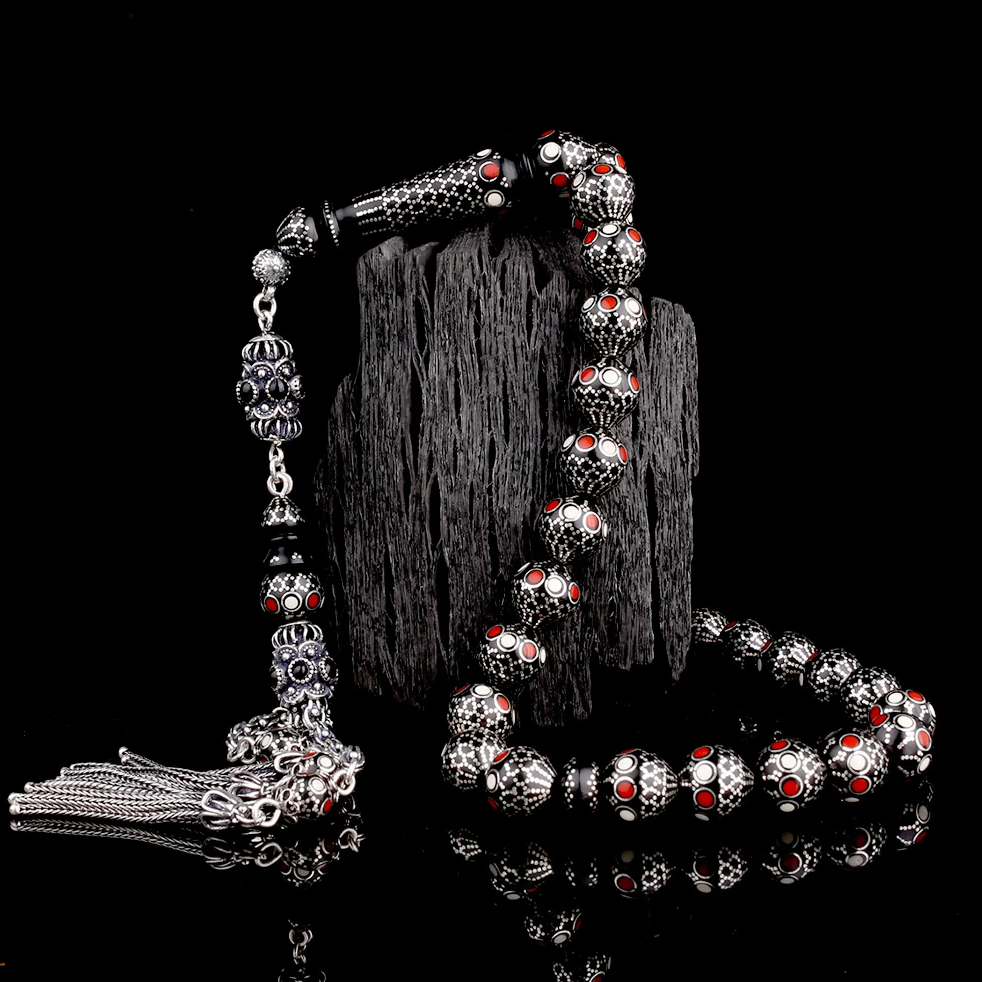 10.mm Gümüş İşleme Kırmızı Beyaz Mineli Usta El İşçiliği Kuka Tesbih Hakkında