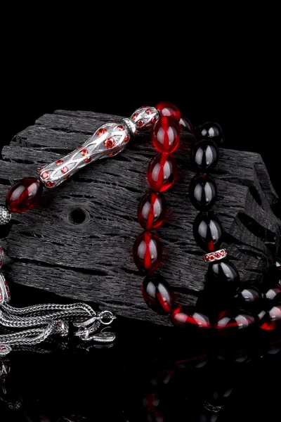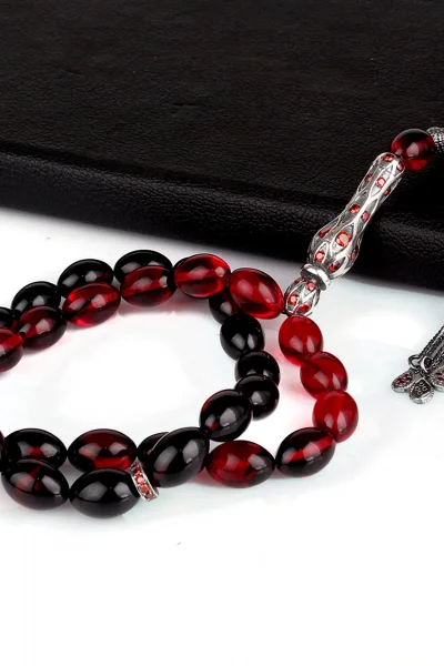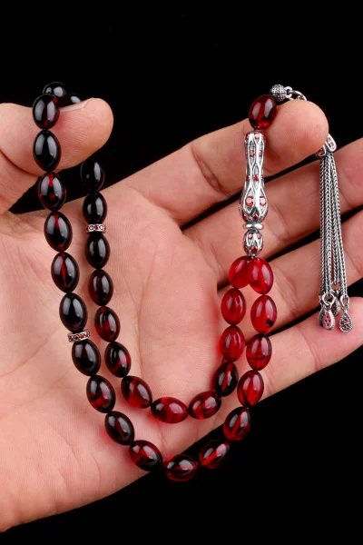 ÜRÜN ÖZELLİKLERİTesbih Cinsi: Sıkma Kehribar TesbihTane Ebadı: 9-12 mmİmame Boyu: 3 cmİmameden Uzunluk:22 cmTam Boy: 33 cmPüskül Malzemesi: Gümüş püskül