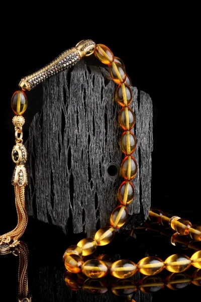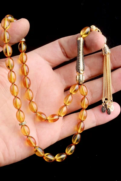 925 Ayar Altın Kaplamalı Gümüş Püsküllü Sıkma Kehribar Tesbih Hakkında