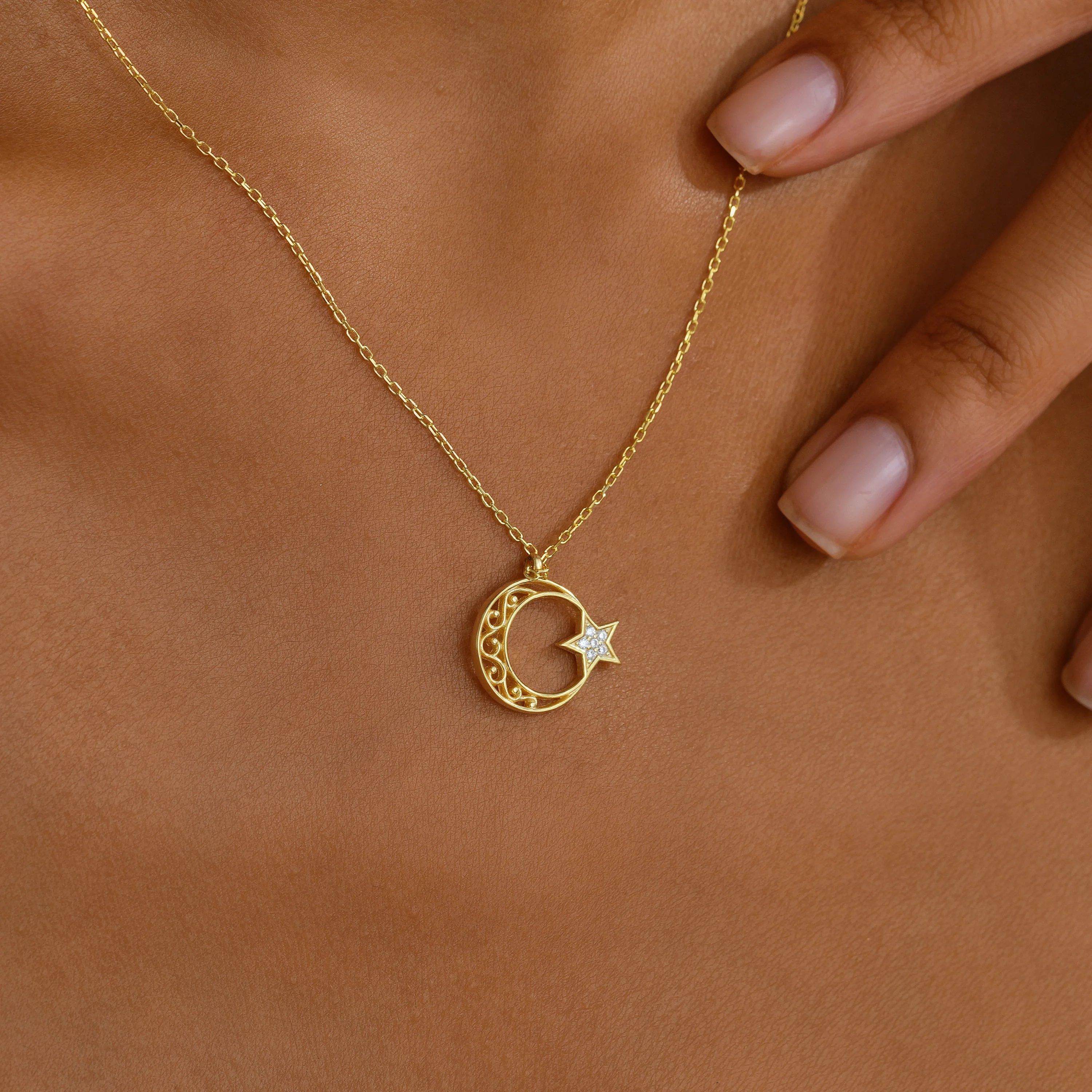 Ortalama ağırlık: 2.00 Gram'dır. Ürünün boyutu: Uzunluk: 1.50 cm Genişlik: 1.60 cm'dir Zincir Uzunluğu: 45 cm’dir. “Ay ve yıldızın büyülü birlikteliğini yansıtan bu 925 ayar gümüş kolye, zarafeti ve anlamı bir araya getiriyor. Ay; huzuru ve yeniden doğuşu, yıldız ise umut ve rehberliği simgeler. Altın ve gümüş kaplama seçenekleriyle zarif, anlamlı bir hediye seçeneğidir.”?⭐ Kararmalara karşı rodium kaplama da yapılmıştır. Ürünlerimizin tamamı el yapımı olduğu için belirtilen ağırlıkta (+/-) %5 değişiklik olabilir.