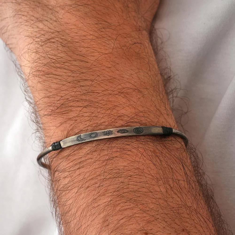 925 ayar gümüş kullanılarak üretilmiştir.Bu semboller genellikle derin manevi ve sembolik anlamlar taşırlar. Bir bilezikte bu sembolleri bir araya getirmek, kişinin inançlarına, manevi yolculuğuna veya kişisel gelişimine dair bir ifade olabilir. Örneğin:
