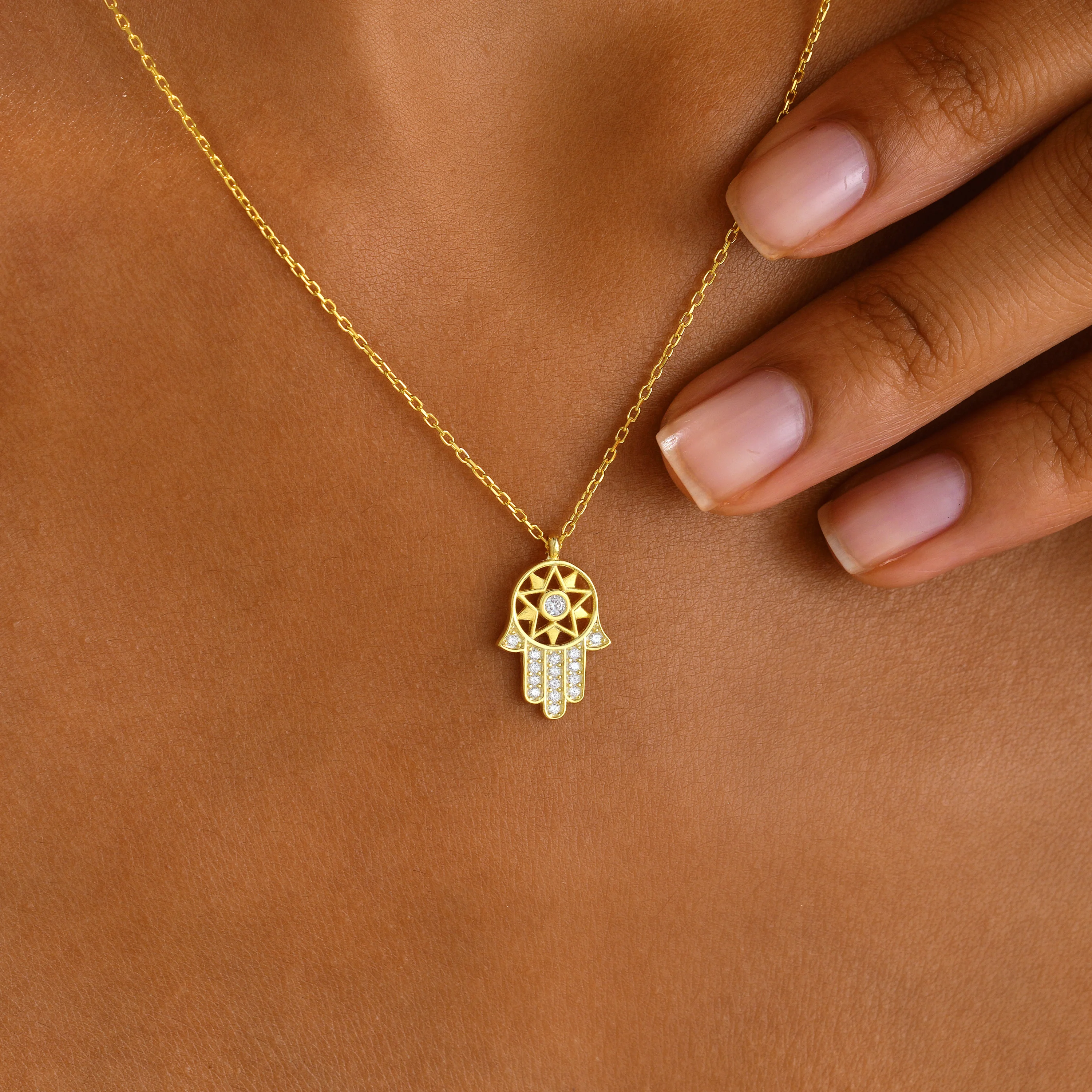 Ortalama ağırlık: 1.90 Gram'dır. Ürünün boyutu: Uzunluk: 1.70 cm Genişlik: 1.10 cm'dir. Zincir Uzunluğu: 45 cm’dir. Ürünün tamamı (zincir dahil) gümüştür. Kötülüklerden koruduğuna inanılan Fatma’nın Eli sembolü, zarif taş detaylarıyla yeniden yorumlandı. 925 ayar gümüşten üretilen bu özel kolye, hem şık hem anlamlı bir takı seçeneğidir. Kararmalara karşı rodium kaplama da yapılmıştır. Ürünlerimizin tamamı el yapımı olduğu için belirtilen ağırlıkta (+/-) %5 değişiklik olabilir.