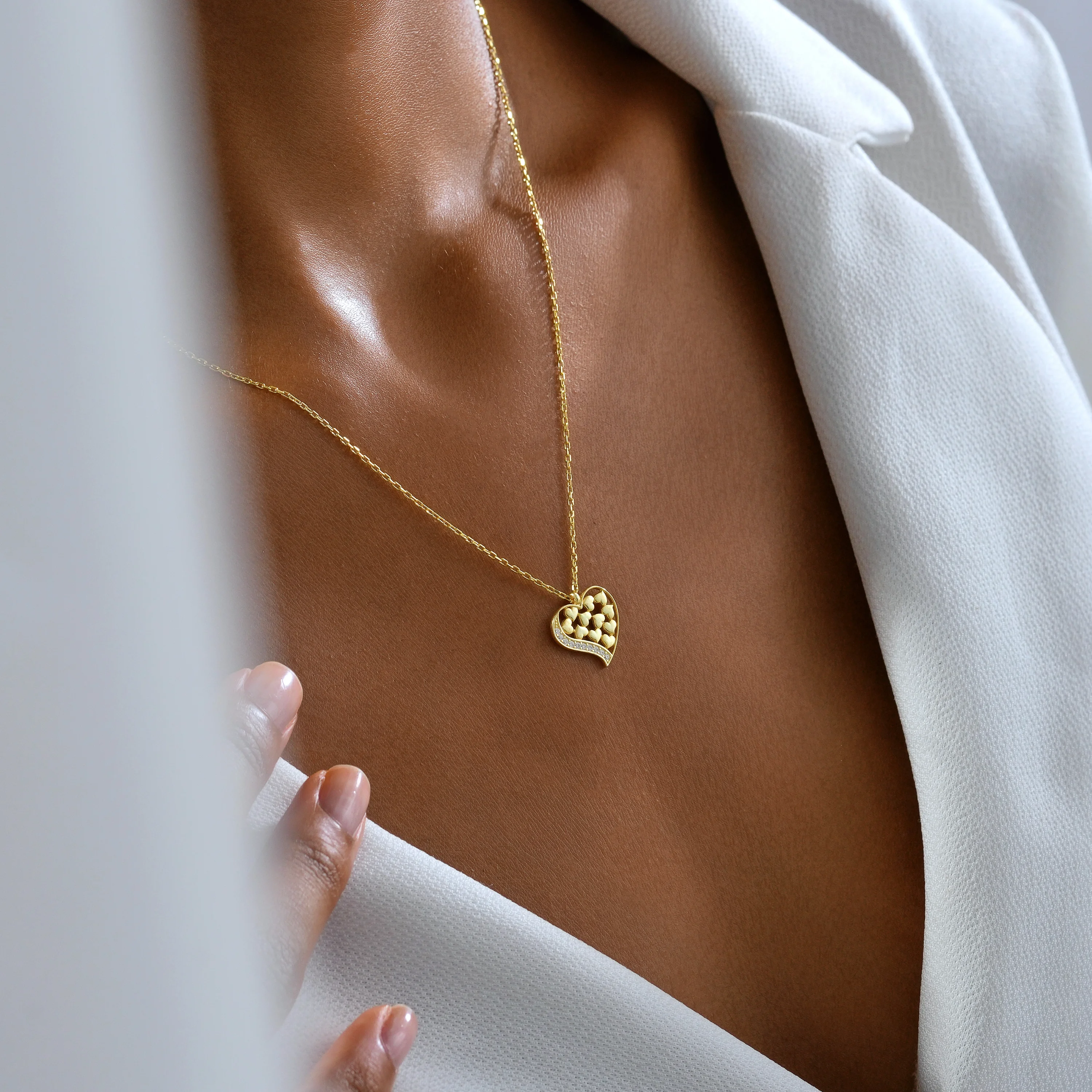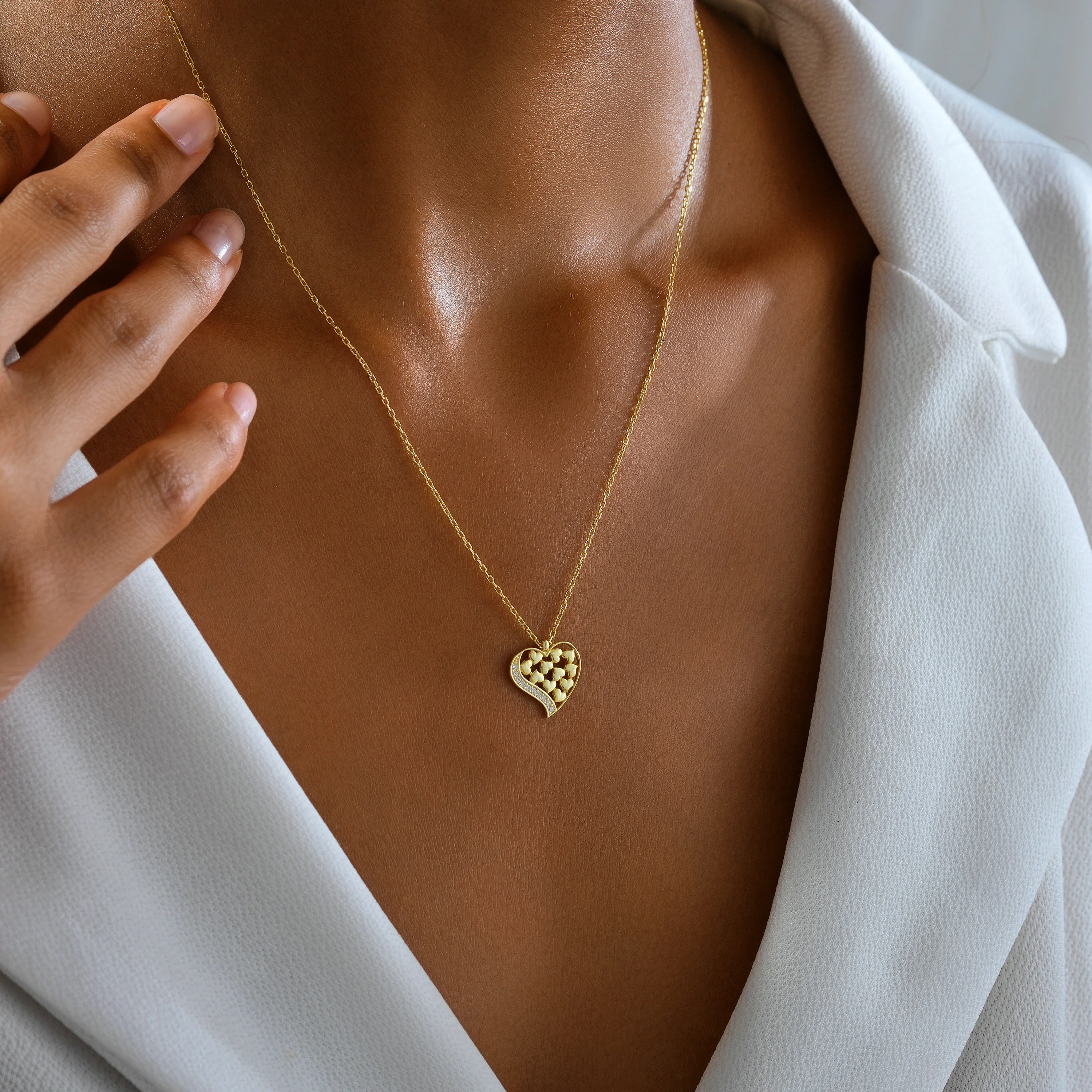 Ortalama ağırlık: 1.80 Gram'dır. Ürünün boyutu: Uzunluk: 1.40 cm Genişlik: 1.30 cm'dir. Zincir Uzunluğu: 45 cm’dir. Ürünün tamamı (zincir dahil) gümüştür. Bir kalbin içinde gizlenen onlarca küçük kalp… Her biri sevginin farklı bir halini anlatıyor: tutku, dostluk, sadakat ve umut. Bu özel tasarım, iç içe geçmiş kalplerin zarif uyumuyla aşkın birliğini ve çoğalmasını sembolize ediyor. 925 ayar gümüşten üretilen Kalpler Mozaiği Kolye, her bakışta kalbin sıcaklığını yansıtır. Kararmalara karşı rodium kaplama da yapılmıştır. Ürünlerimizin tamamı el yapımı olduğu için belirtilen ağırlıkta (+/-) %5 değişiklik olabilir.