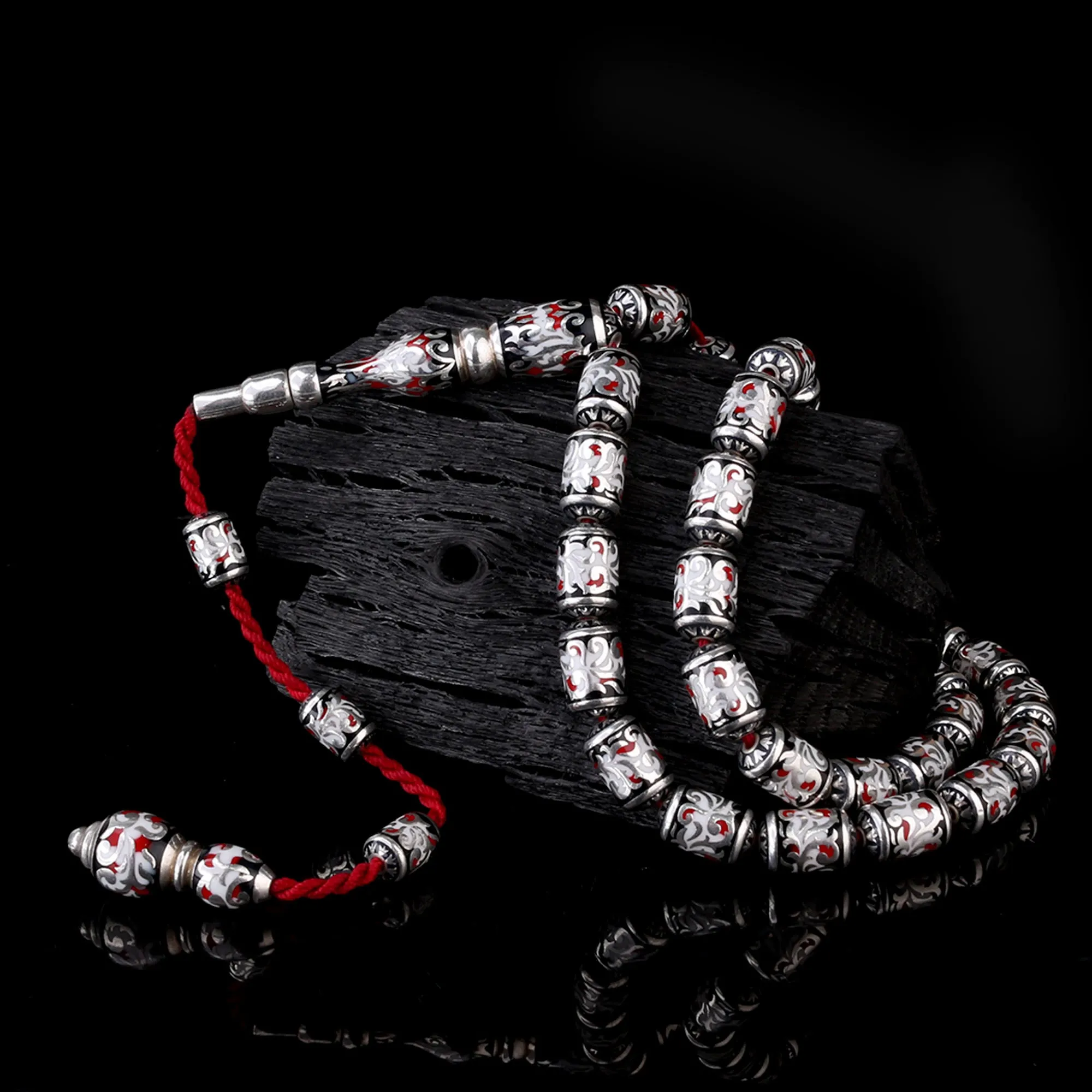 Ürün Özellikleri·Tane Boyu: 7,11 mm·İmameden Uzunluk : 23 cm·Tam Boy : 34 cm·Renk : Siyah Kırmızı Beyaz.Ürünün Tamamı 925 Ayar Gümüştür.