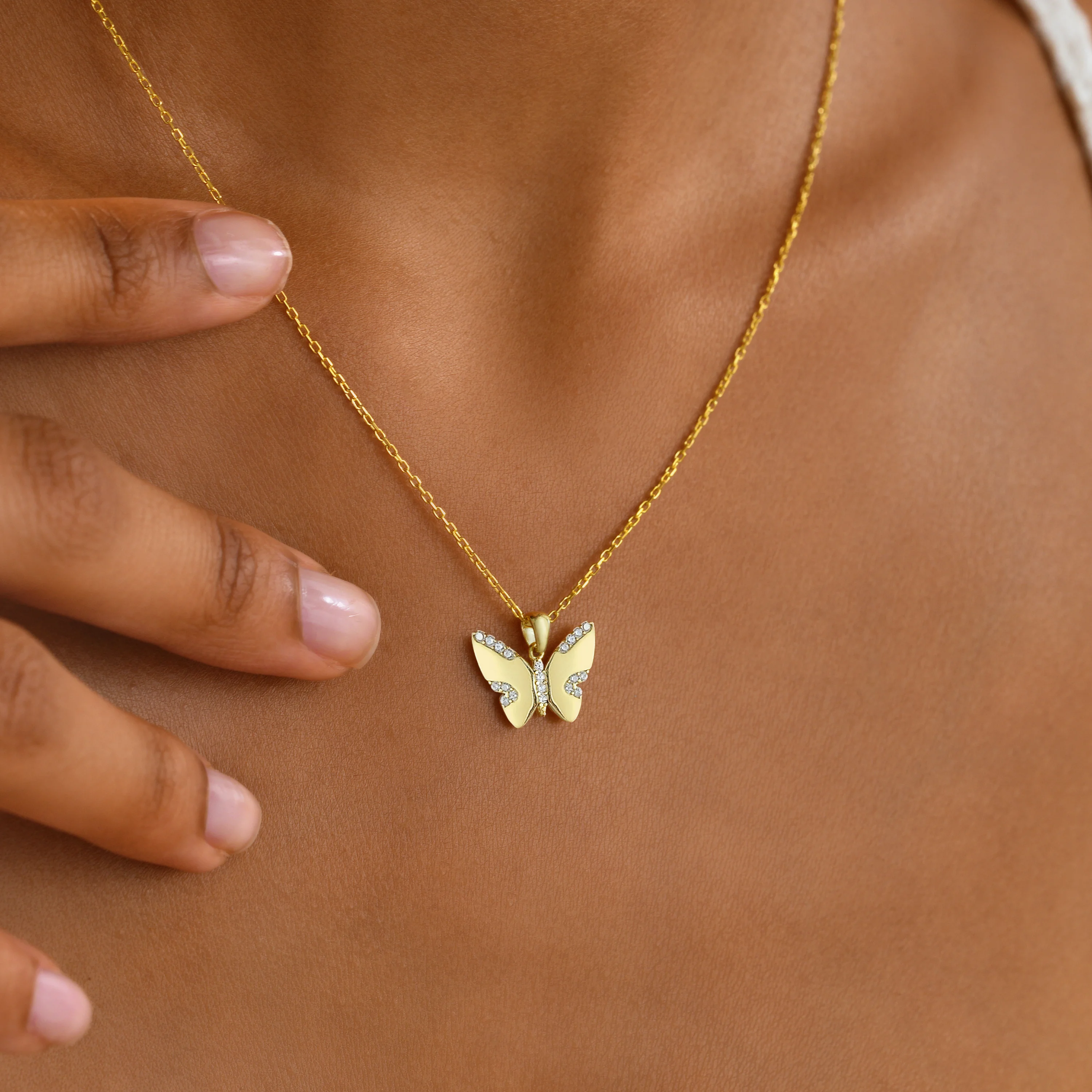Ortalama ağırlık: 1.90 Gram'dır. Ürünün boyutu: 1.40 cm'dir. Zincir Uzunluğu: 45 cm’dir. Ürünün tamamı (zincir dahil) gümüştür. “Özgürlüğün ve yeniden doğuşun sembolü kelebeğin zarif formundan ilham alan bu 925 ayar gümüş kolye, taşlı kanat detaylarıyla ışığı büyüleyici şekilde yansıtır. Hafifliği ve şıklığıyla günlük kullanıma da özel günlere de eşlik eder.” Kararmalara karşı rodium kaplama da yapılmıştır. Ürünlerimizin tamamı el yapımı olduğu için belirtilen ağırlıkta (+/-) %5 değişiklik olabilir.