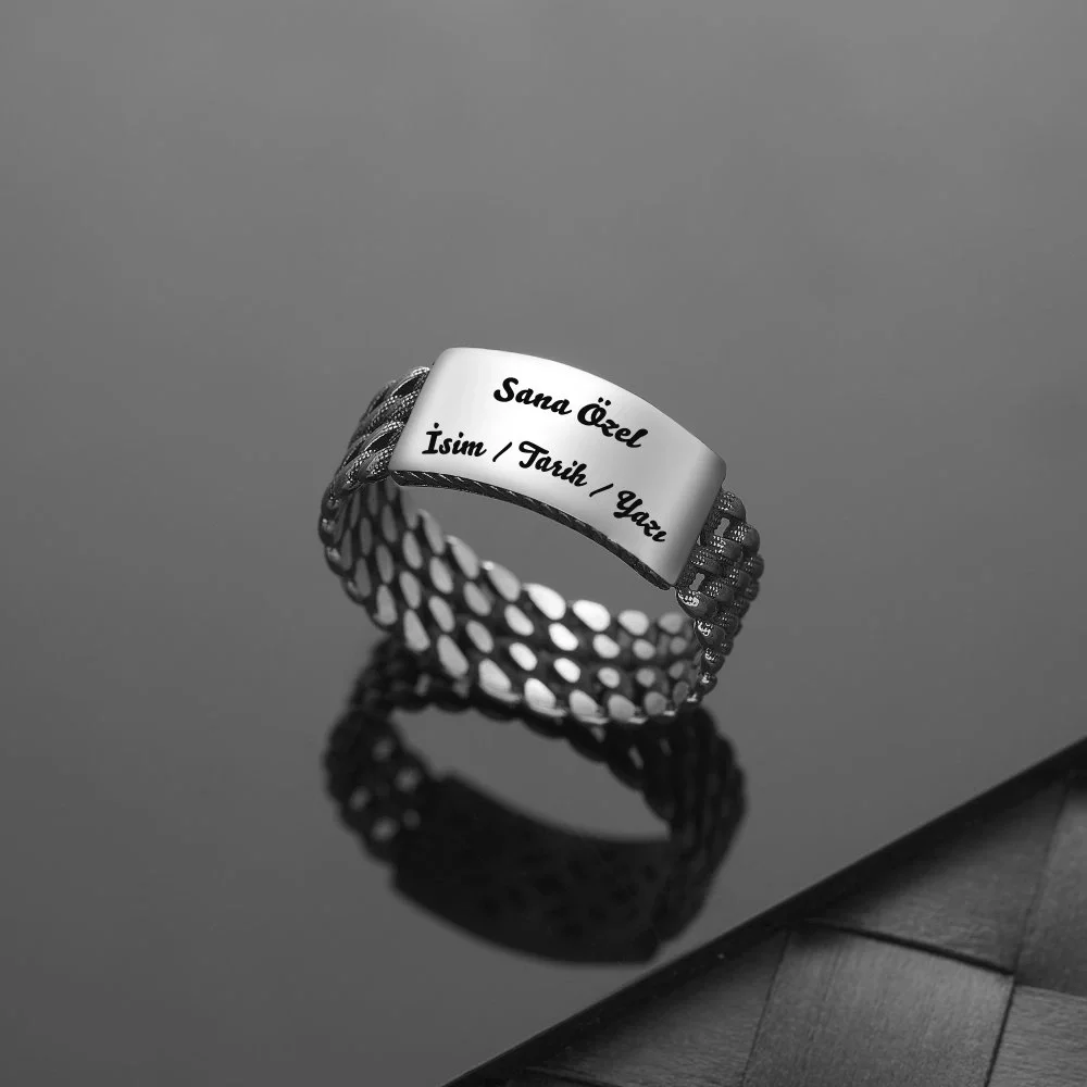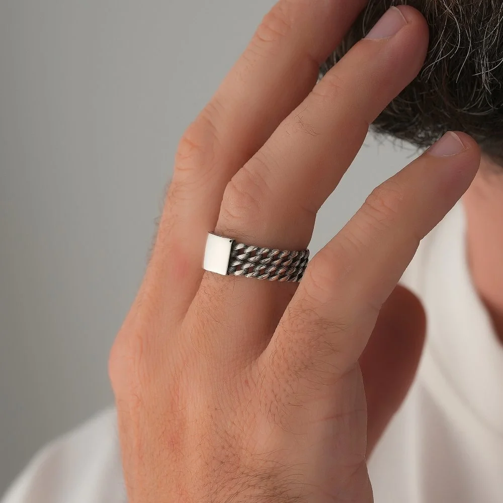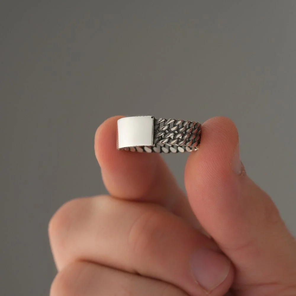 925 Ayar Gümüş Kuba Zincir Motifli Üstü Kişiselleştirilebilir Erkek Yüzüğü Hakkında
