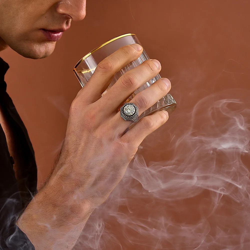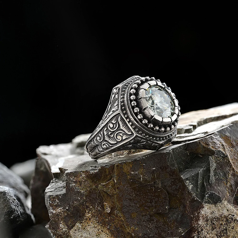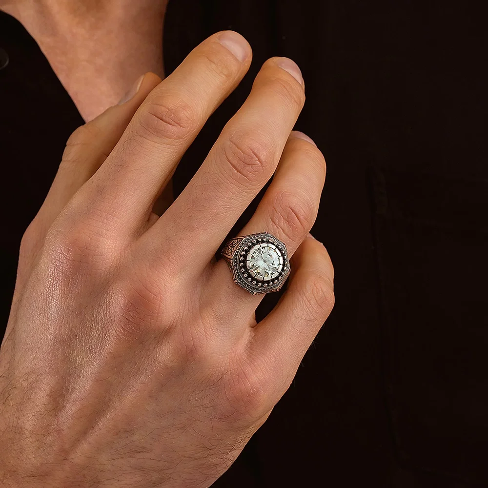925 Ayar Gümüş Mozanite Taşlı Kalem İşlemeli Erkek Yüzük Hakkında