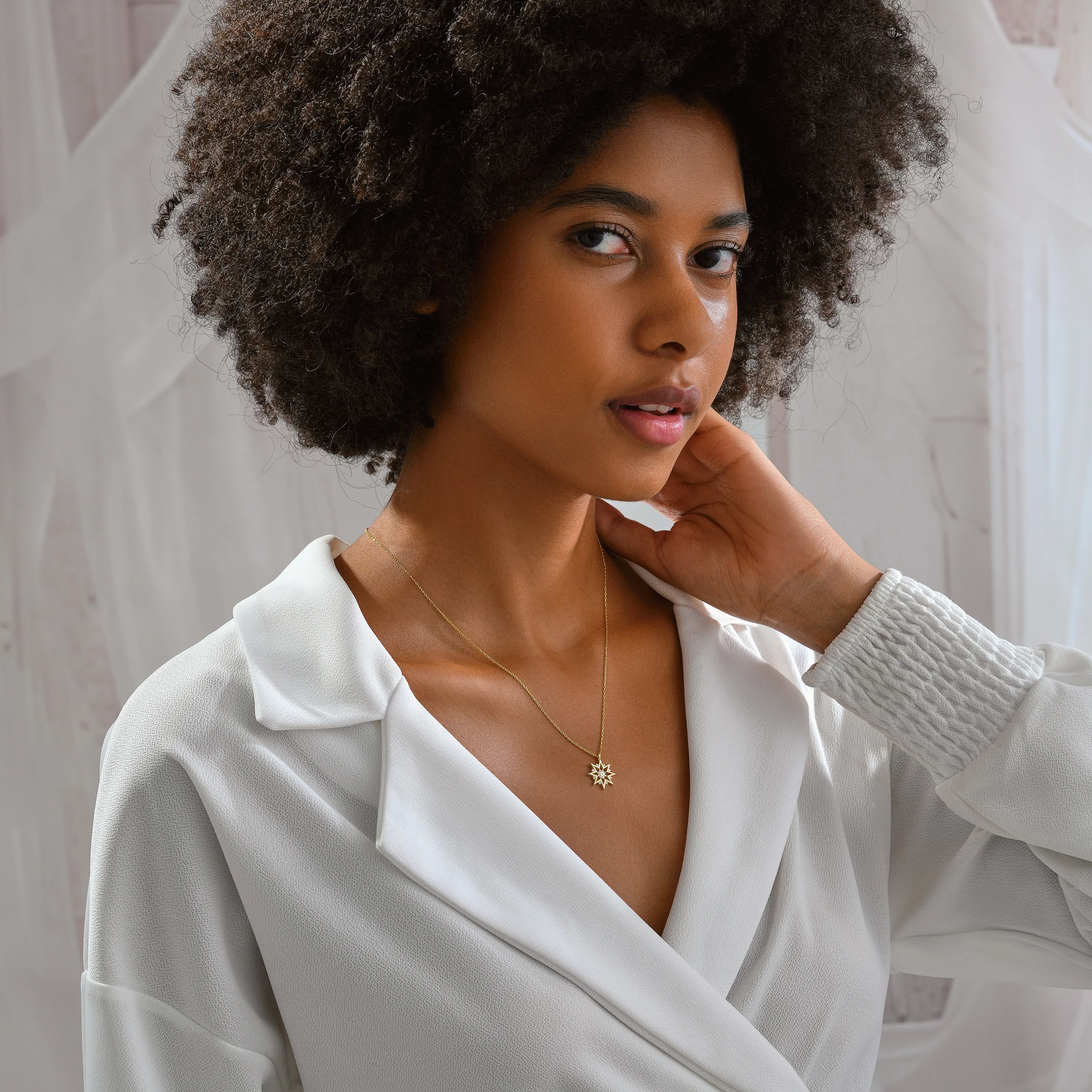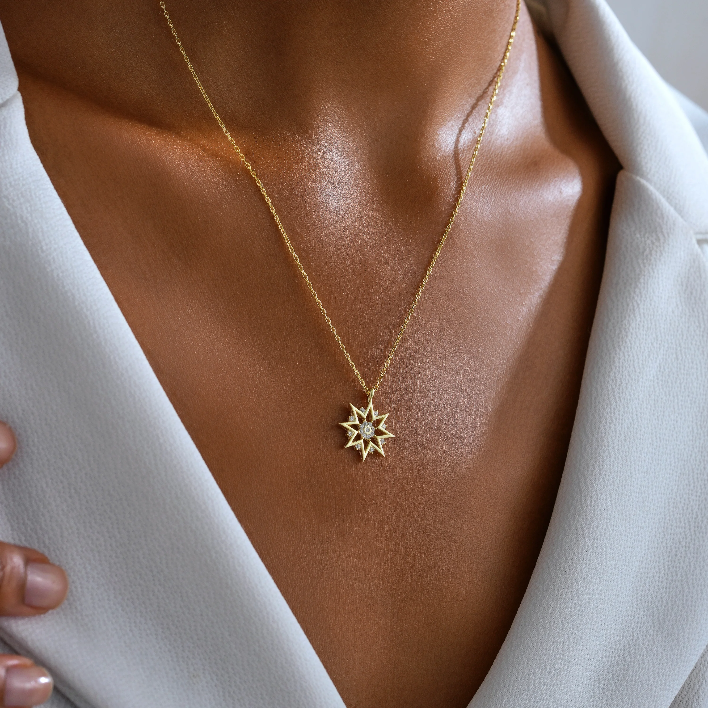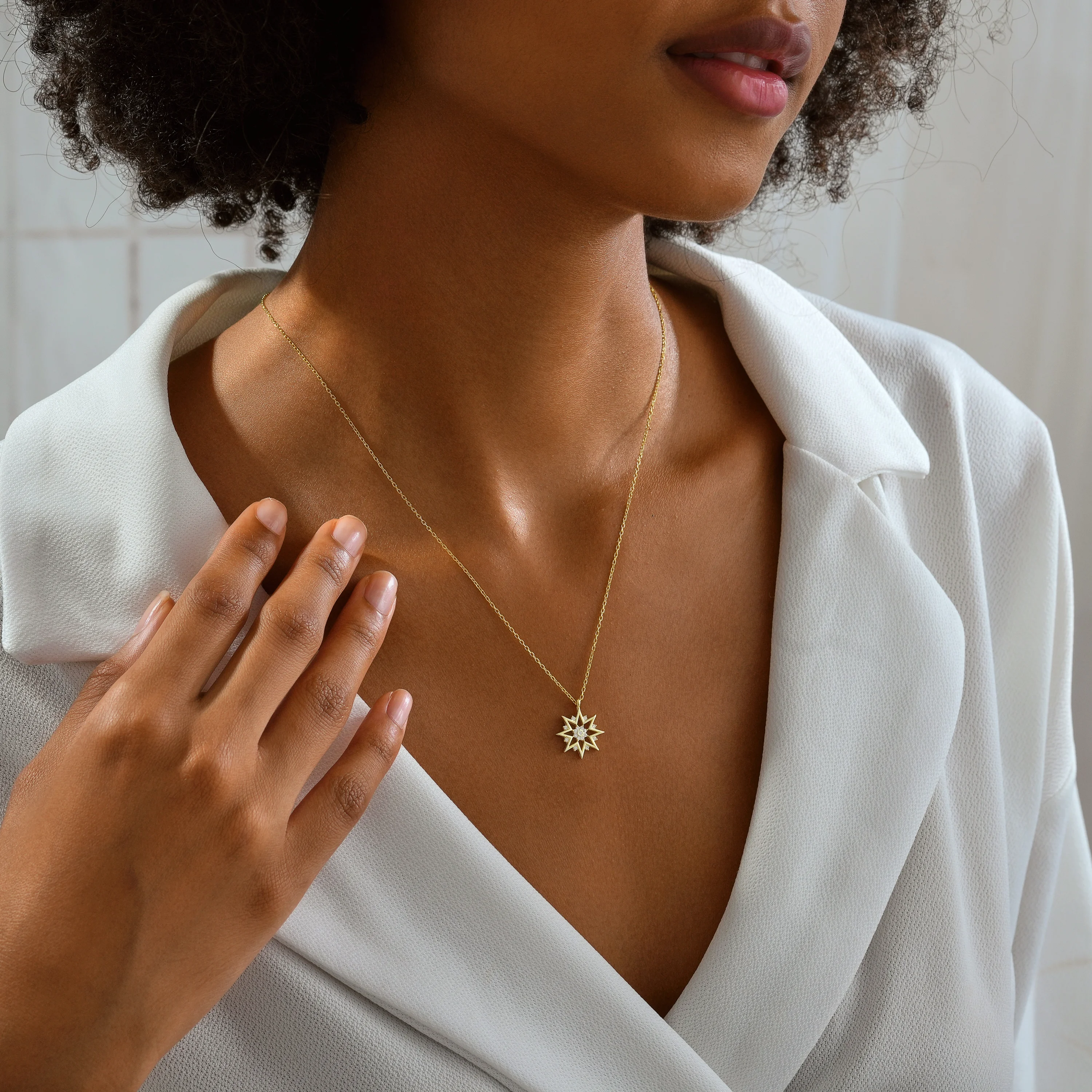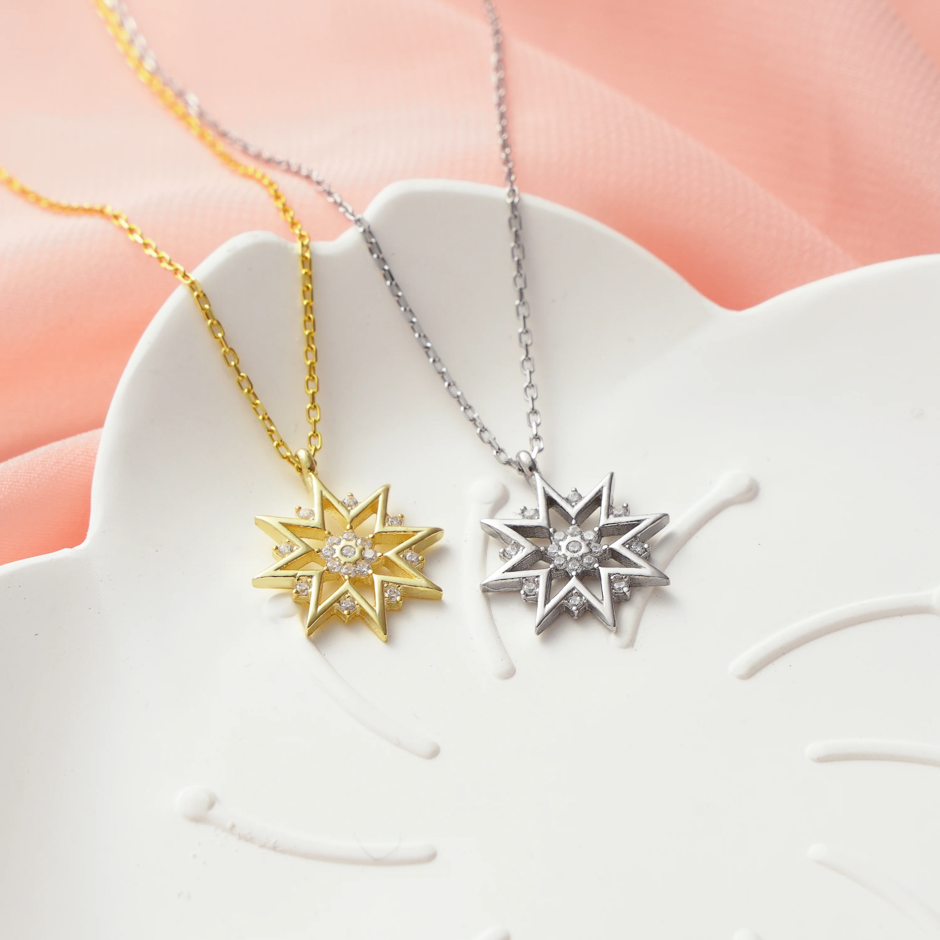 Ortalama ağırlık: 2.00 Gram'dır. Ürünün boyutu: Uzunluk: 1.70 cm Genişlik: 1.40 cm'dir. Zincir Uzunluğu: 45 cm’dir. Ürünün tamamı (zincir dahil) gümüştür. Parlak taşlarla bezeli sekiz köşeli yıldız formu, karanlıkta yön bulmayı ve umudu simgeliyor. Işığın ve rehberliğin sembolü Işığın Yolu Kolye, zarif tasarımıyla günlük kullanımda da özel günlerde de ışıltınızı yansıtmak için ideal bir seçimdir. 925 ayar gümüşten üretilmiş, altın ve gümüş renk seçenekleriyle sunulur. Kararmalara karşı rodium kaplama da yapılmıştır. Ürünlerimizin tamamı el yapımı olduğu için belirtilen ağırlıkta (+/-) %5 değişiklik olabilir.