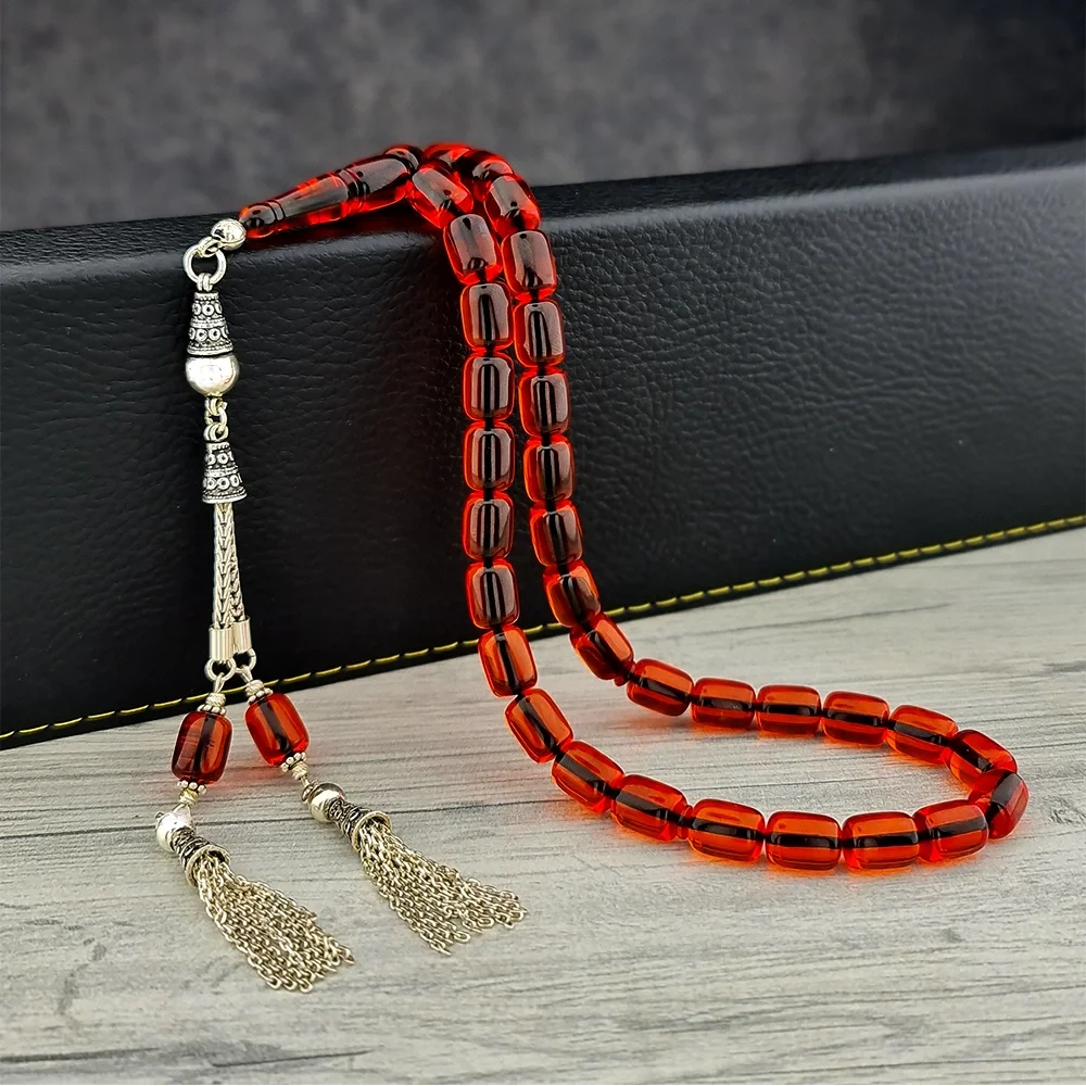 Ürün Özellikleri Tesbih Cinsi: KehribarTane Ebadı: 8*11mmİmame Boyu: 3cmİmameden Uzunluk: 23Tam Boy: 34 cm