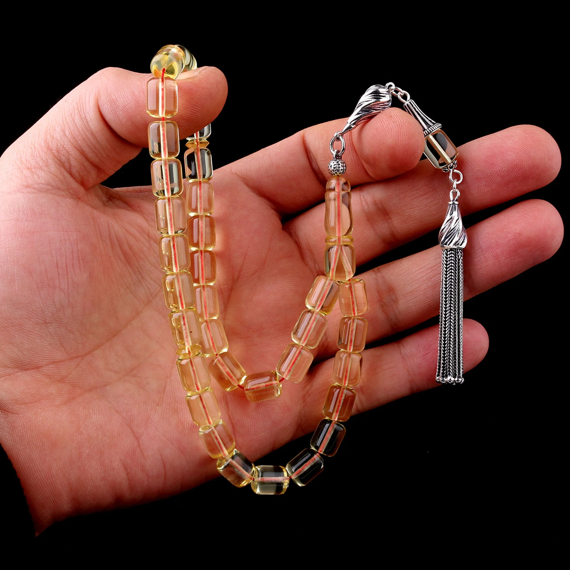 925 Ayar Gümüş Püsküllü Şeffaf Renk Damla Kehribar Tesbih Hakkında