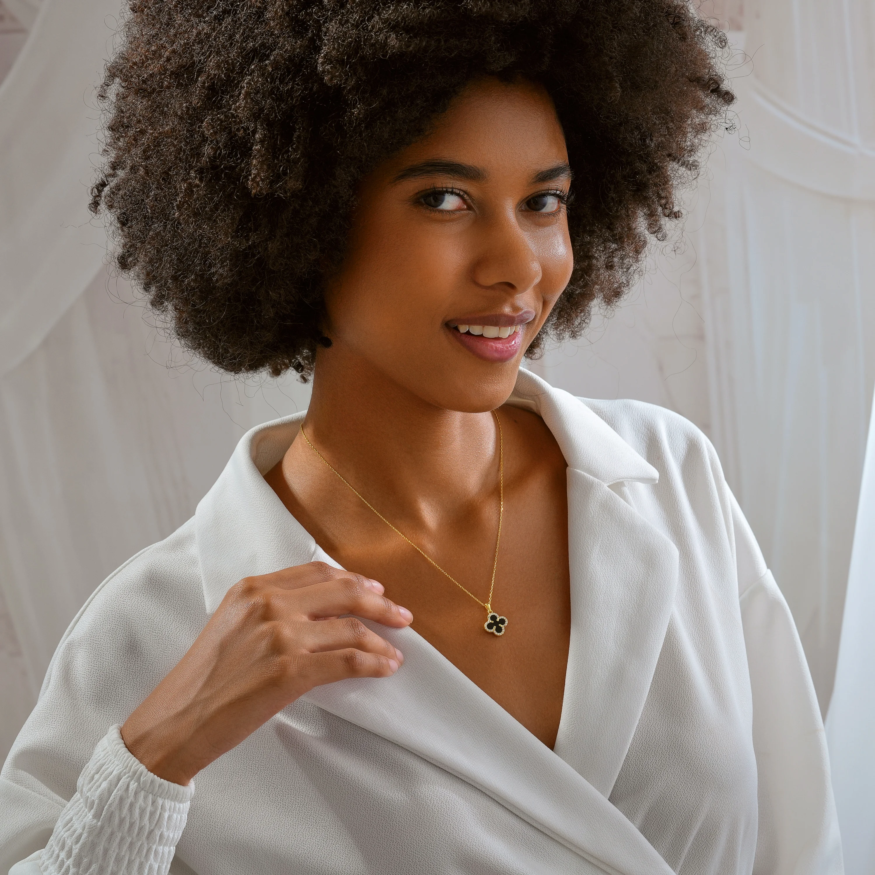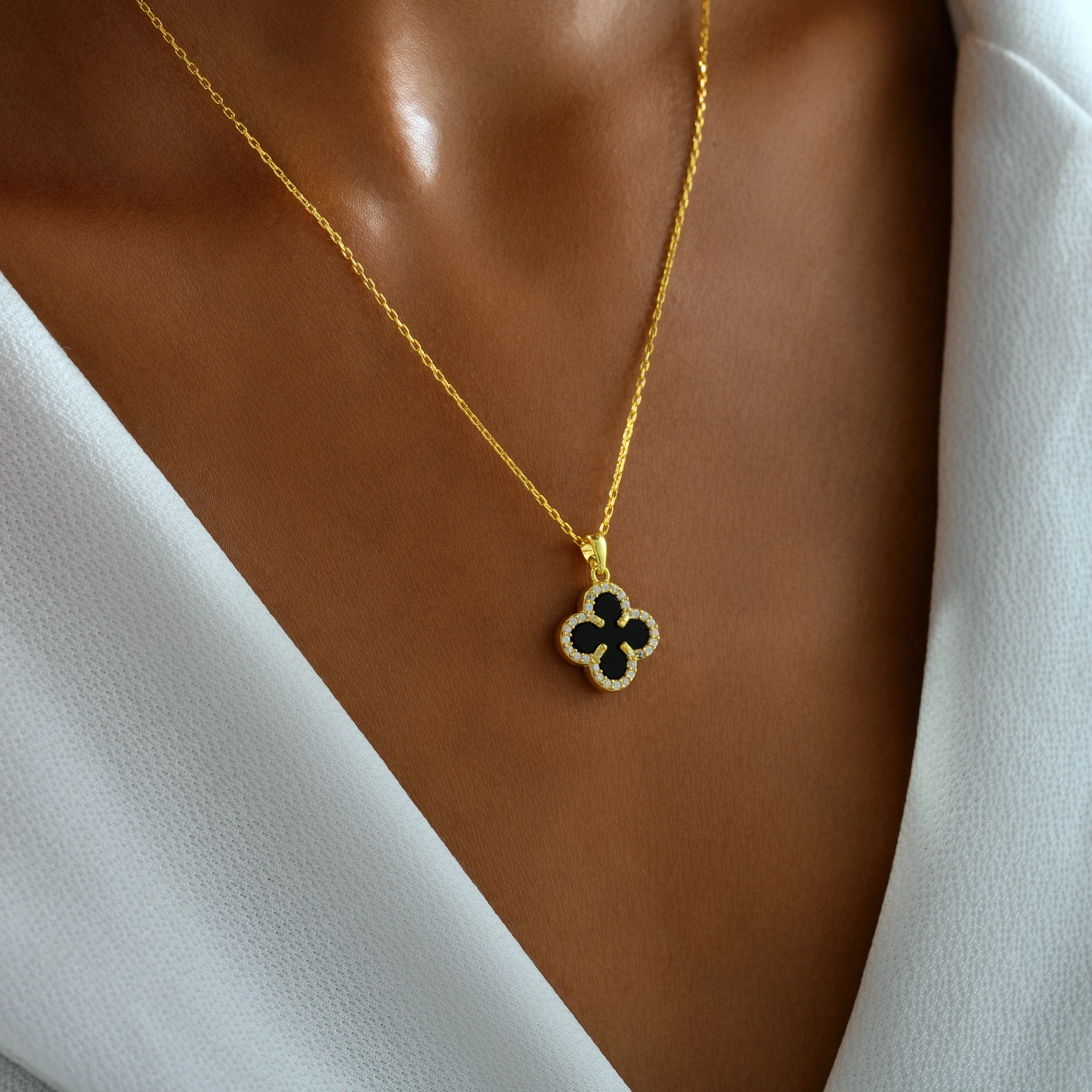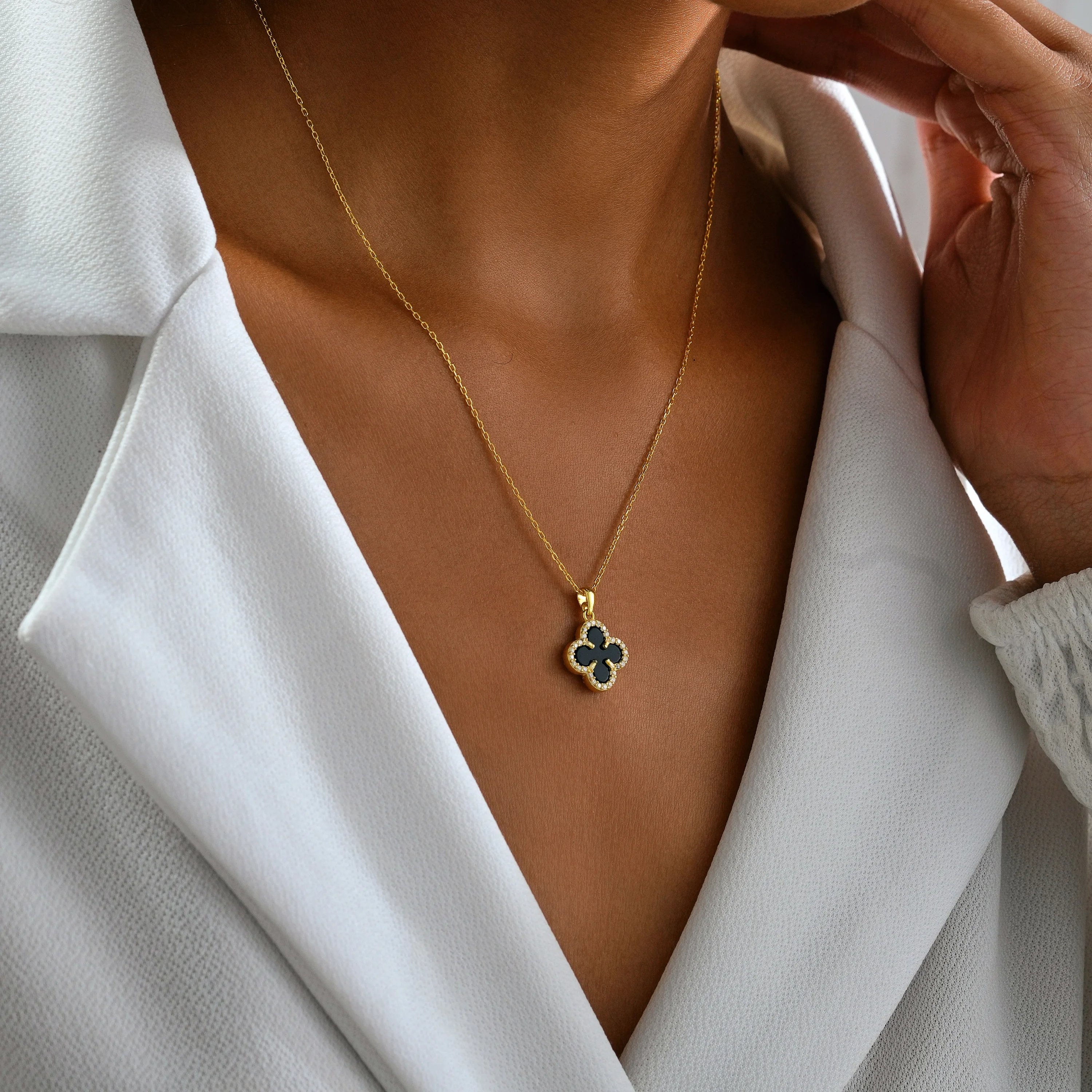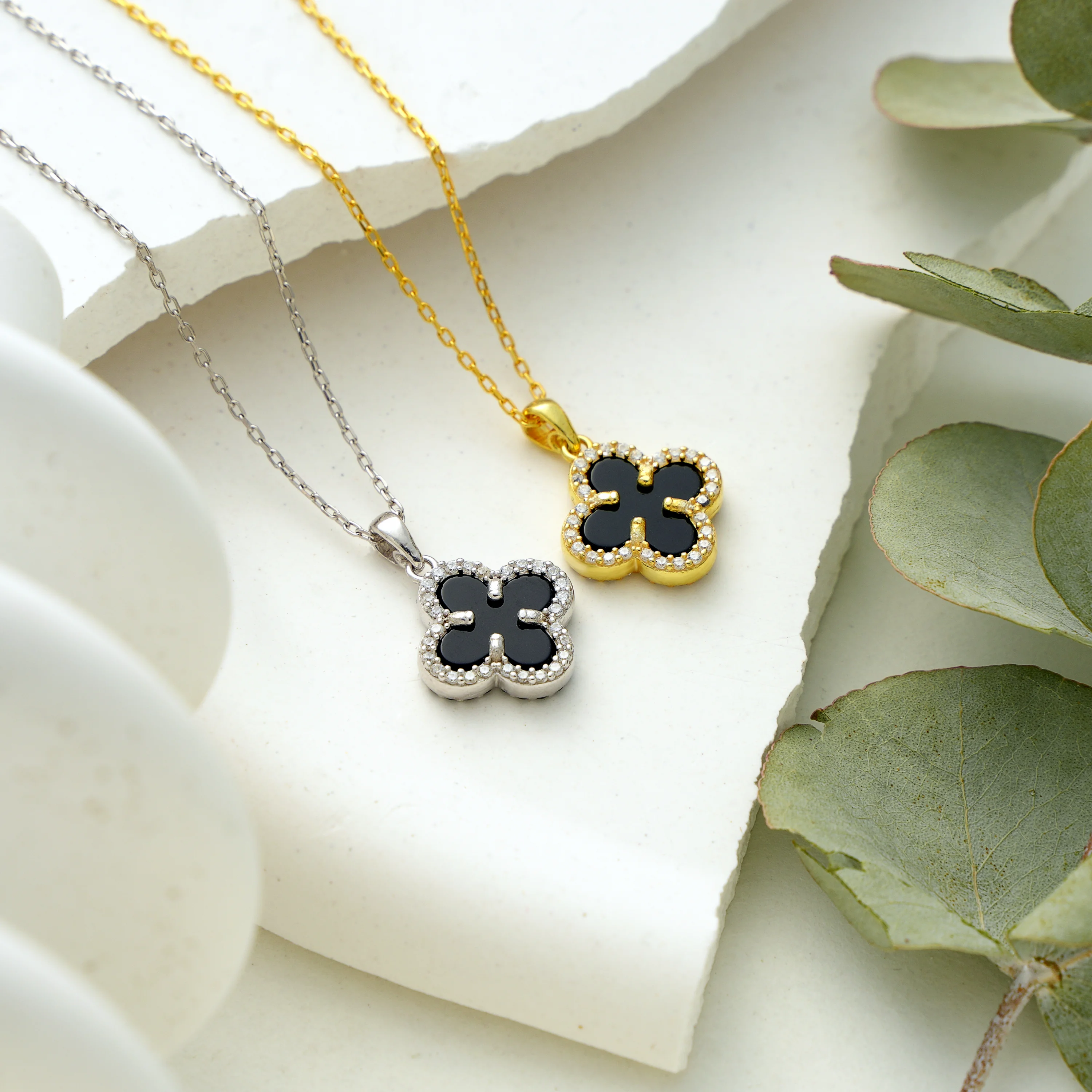 925 Ayar Gümüş Şans Sembolü Siyah Taşlı Yonca Kolye Hakkında