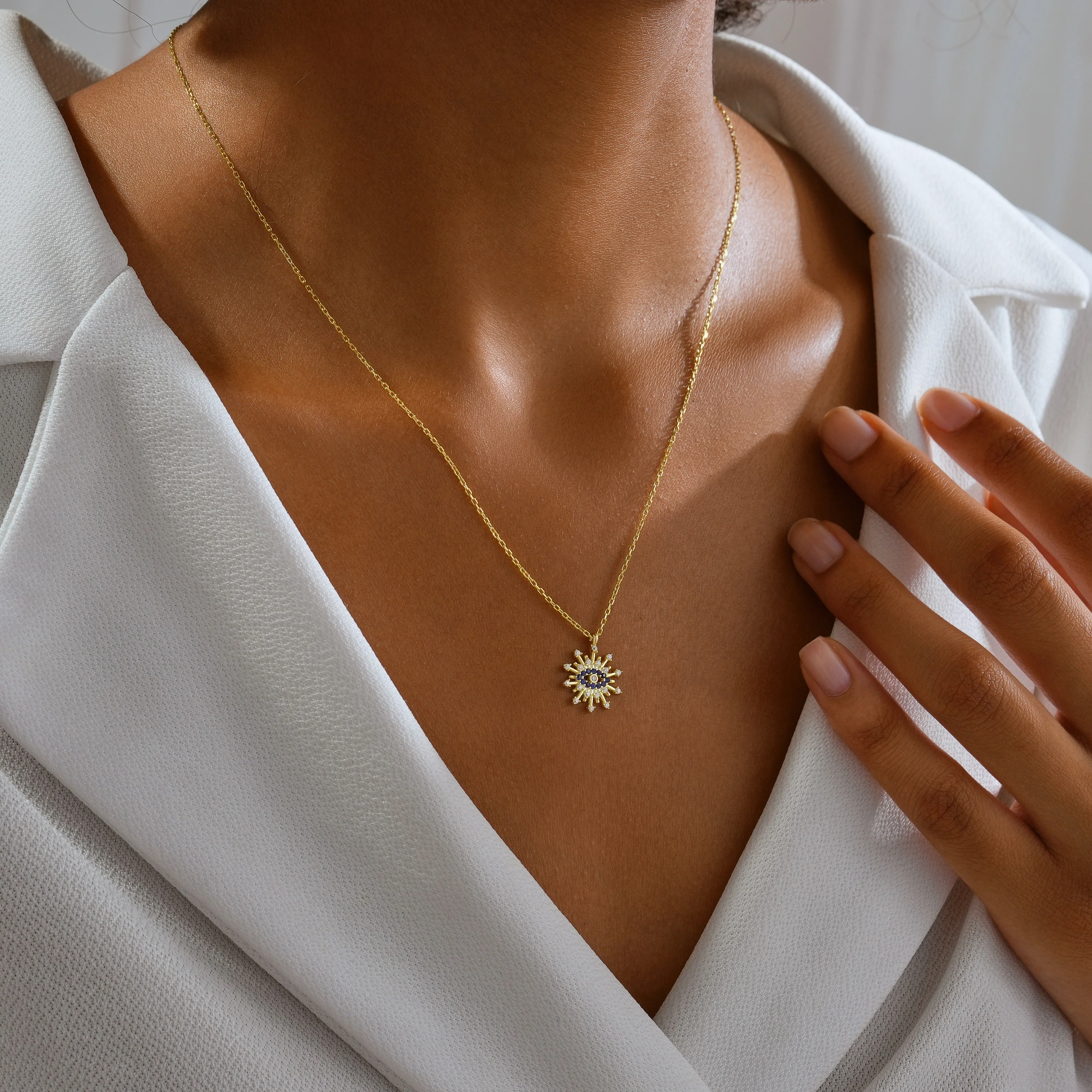 925 Ayar Gümüş Taşlı Nazar Göz Güneş Kolye Hakkında