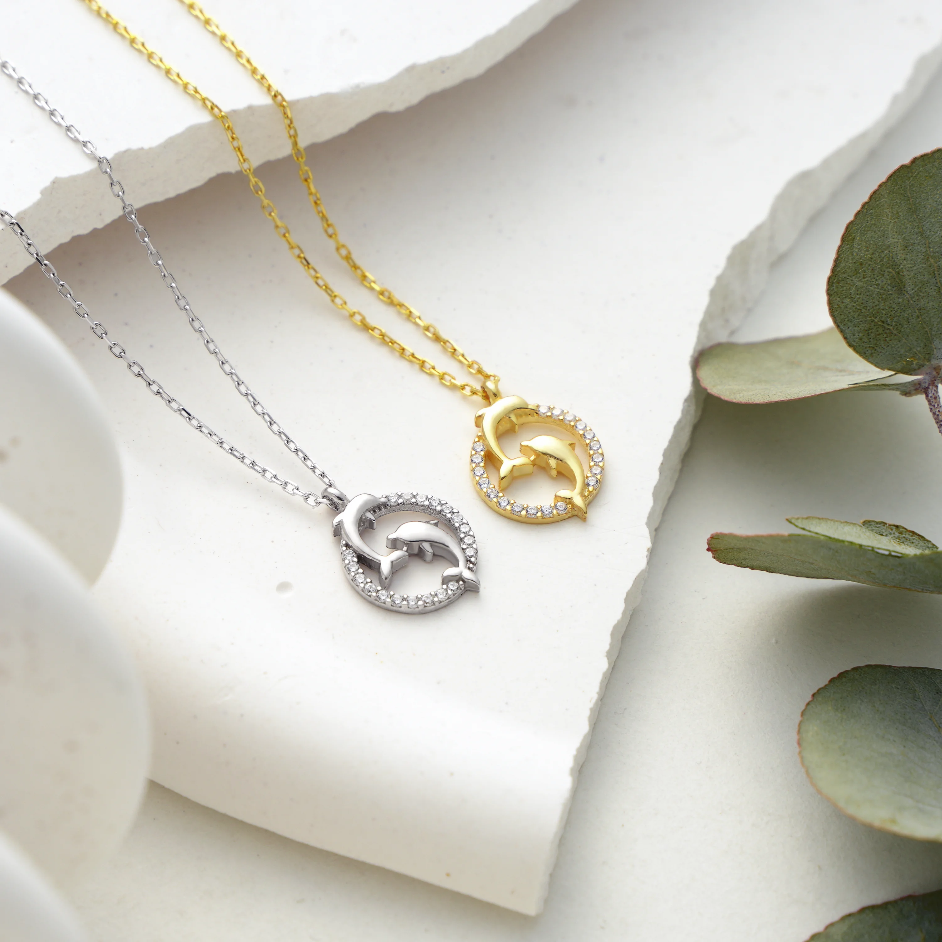 Ortalama ağırlık: 1.90 Gram'dır. Ürünün boyutu: Uzunluk: 1.50 cm Genişlik: 1.20 cm'dir. Zincir Uzunluğu: 45 cm’dir. Ürünün tamamı (zincir dahil) gümüştür. Denizlerin özgür ruhu ve dostluğun sembolü: iki iç içe geçmiş yunusun zarif formuyla tasarlanan bu kolye, sadakat, sevgi ve içsel dengeyi temsil eder. Parıltılı taş detaylarıyla ışıltı kazanan model, 925 ayar gümüş kalitesiyle denizin huzurunu boynunuza taşır.? Kararmalara karşı rodium kaplama da yapılmıştır. Ürünlerimizin tamamı el yapımı olduğu için belirtilen ağırlıkta (+/-) %5 değişiklik olabilir.