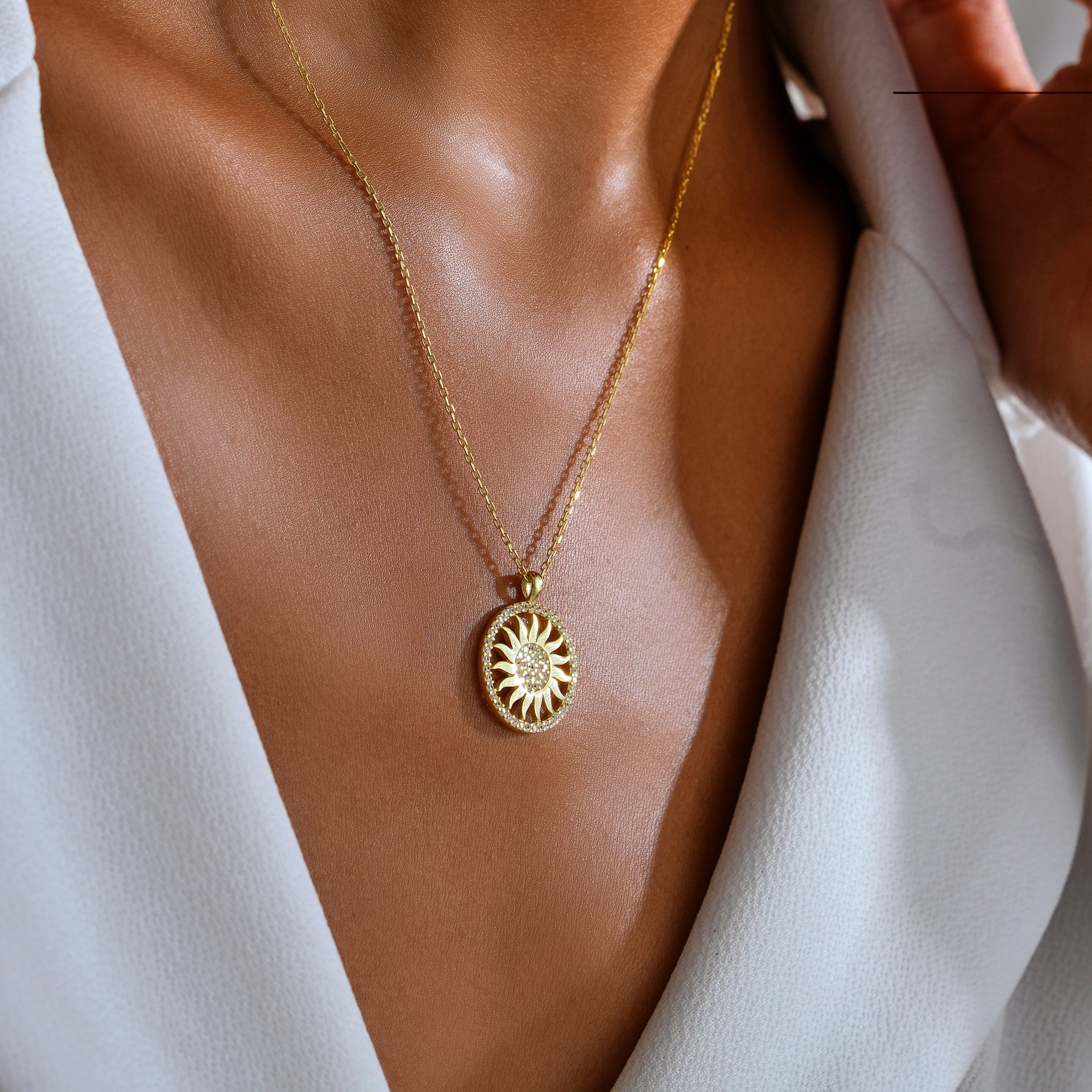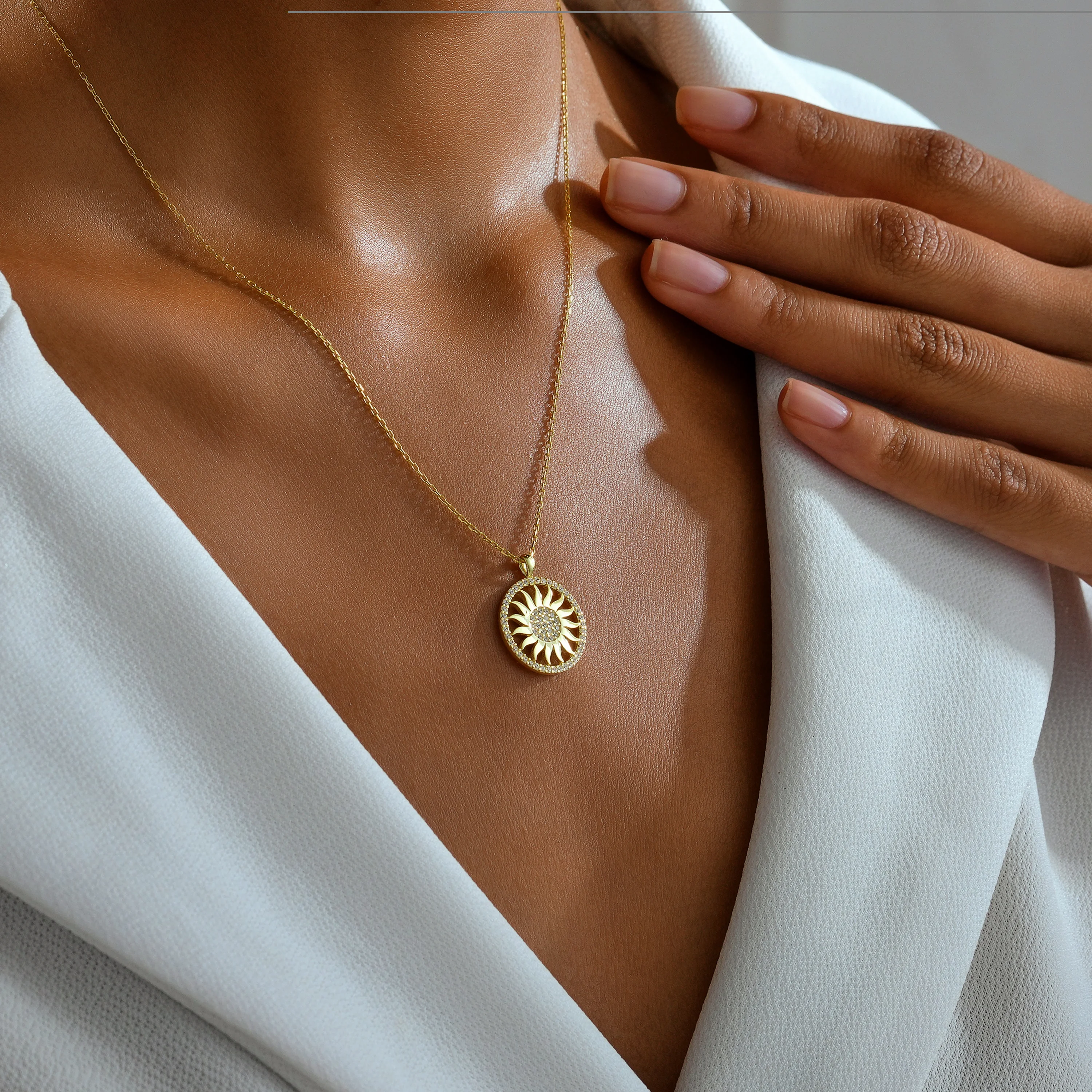 925 Ayar Işıltılı Güneş Figürlü Taşlı Gümüş Kolye Hakkında