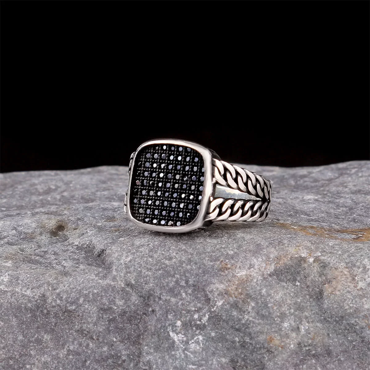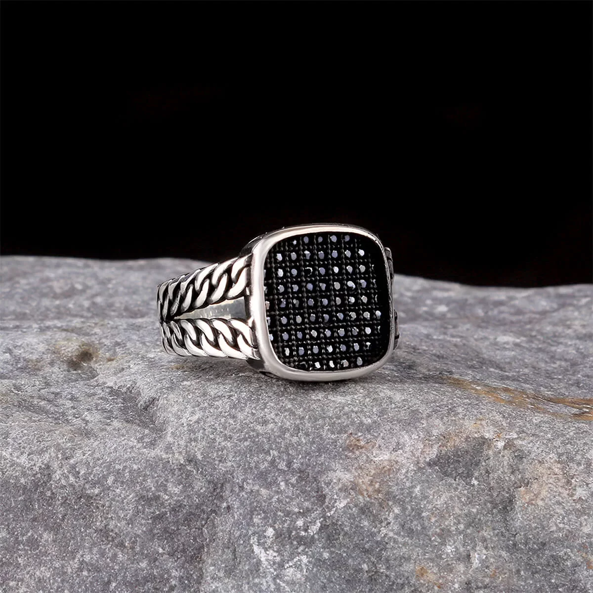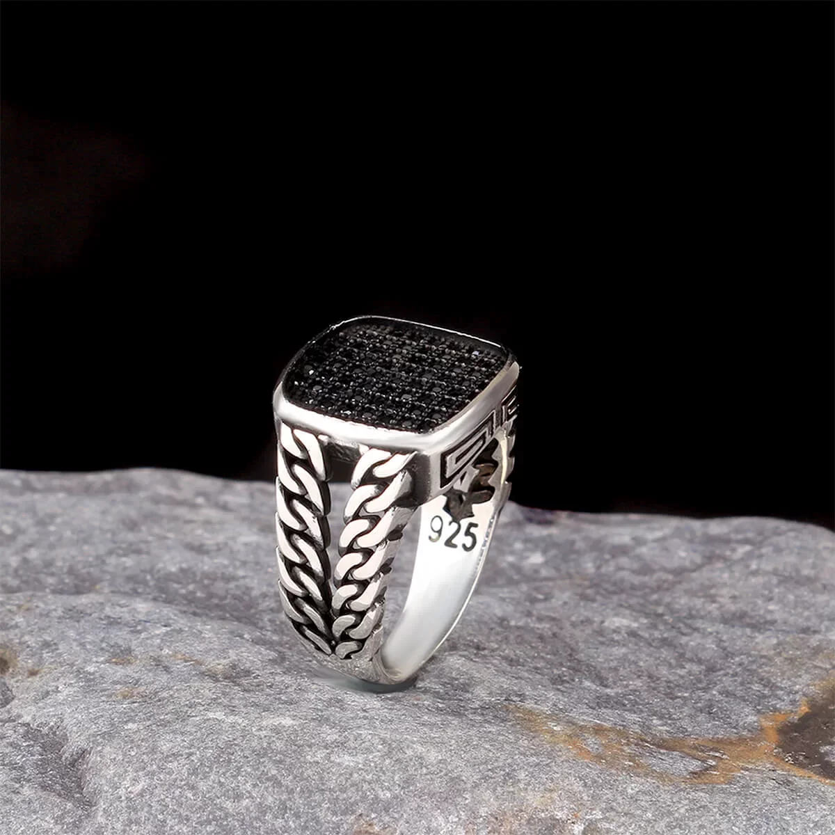925 Ayar Siyah Renk Mikro Taşlı Örgü Model Erkek Yüzük Silver Hakkında