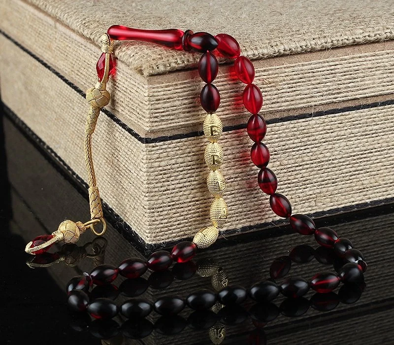 Altın Kaplama Gümüş Kazaz Püskül ve İsim yazılı Ateş Kehribar Tesbih Hakkında