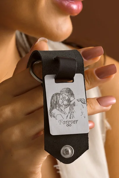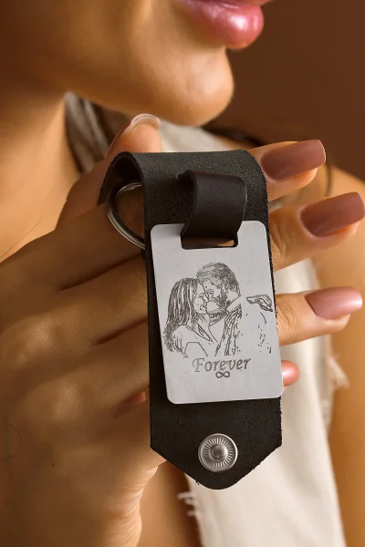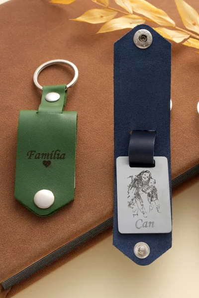 Çelik Plaka Üzerine Kişiye Özel Deri Anahtarlık