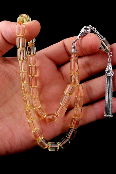 Çift Renk Gümüş Püsküllü Fasetli Damla Kehribar Tesbih Hakkında