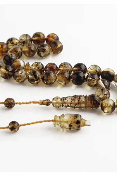 Sistemli Dizili Fosilli Sertifikalı Doğal Damla Kehribar Tesbih