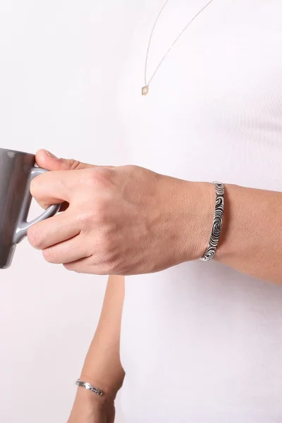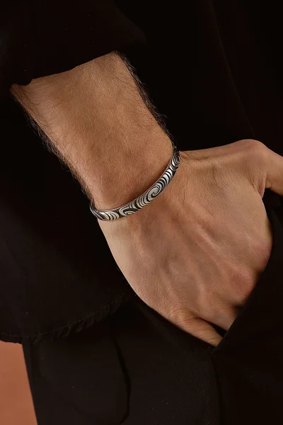 925 Ayar Gümüş Desen Motifli Erkek Bileklik
