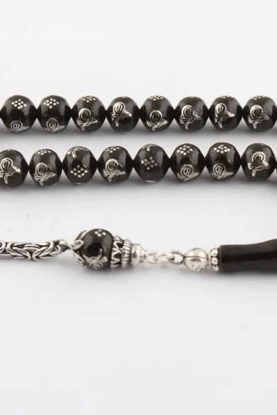 925 Ayar Yoğun Gümüş İşlemeli Erzurum Oltu Taşı Tesbih