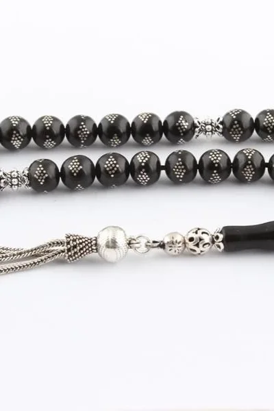 925 AYAR YOĞUN GÜMÜŞ İŞLEMELİ KÜRE KESİM OLTU TAŞI TESBİH