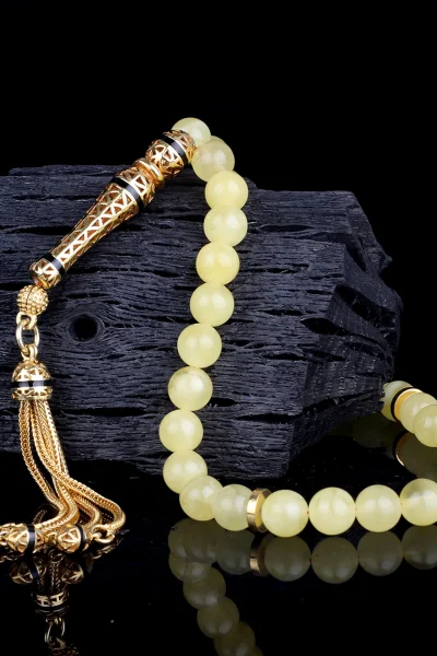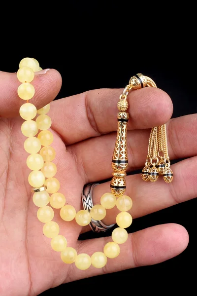Altın Kaplama Gümüş Püsküllü Orjinal Damla Kehribar Tesbih