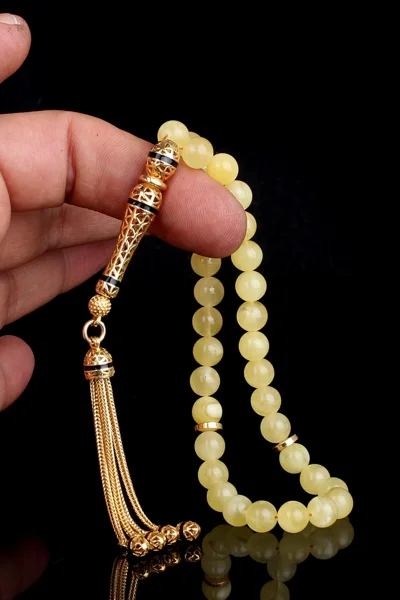 925 Ayar Gümüş Püsküllü Özel Zirkon Taşlı İmameli Damla Kehribar Tesbih