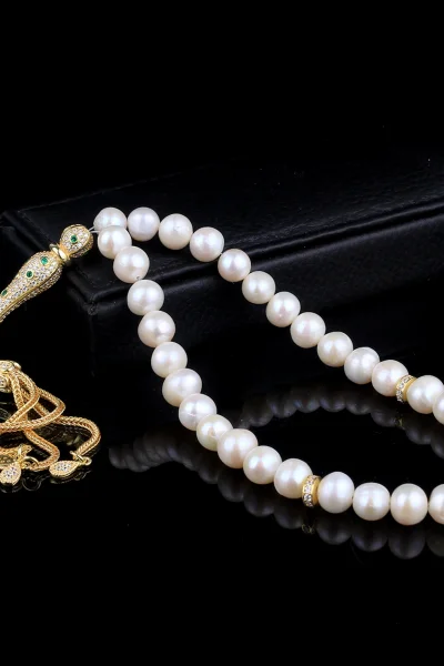 ALTIN KAPLAMA ZİRKON TAŞLI GÜMÜŞ SET İNCİ TAŞLI TESBİH