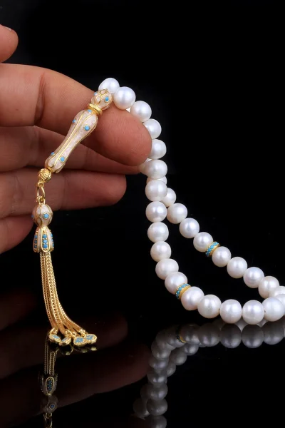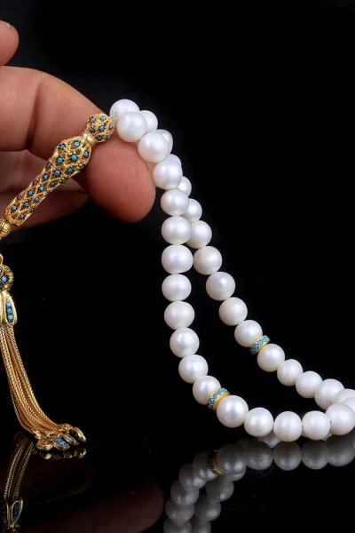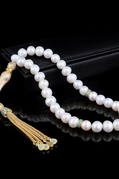 ALTIN KAPLAMALI TURKUAZ MİKRO TAŞLI 925 AYAR GÜMÜŞ TESBİH