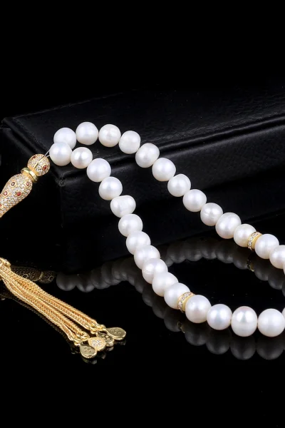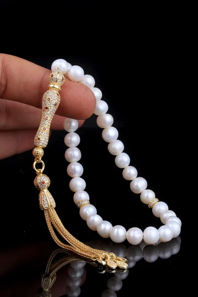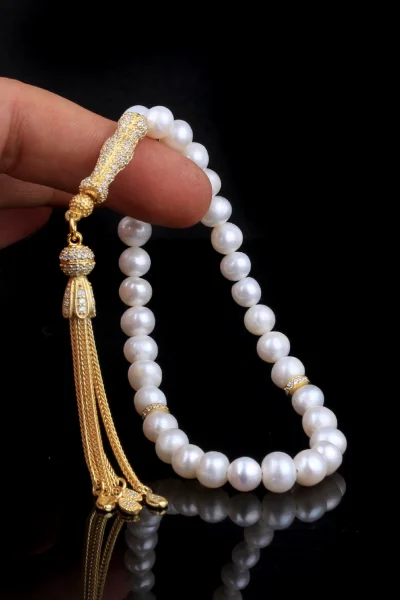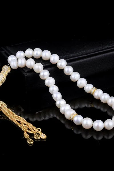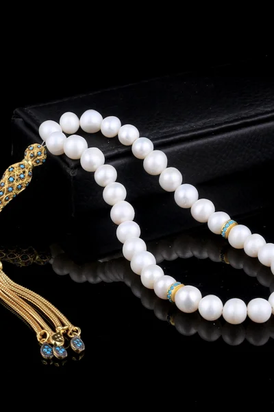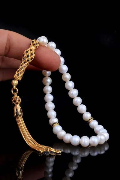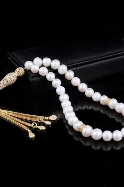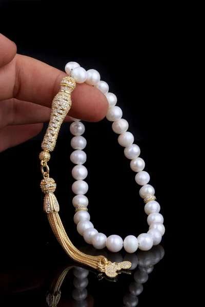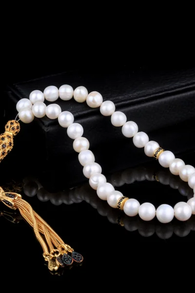 ALTIN KAPLAMA ZİRKON TAŞLI GÜMÜŞ SET İNCİ TAŞLI TESBİH