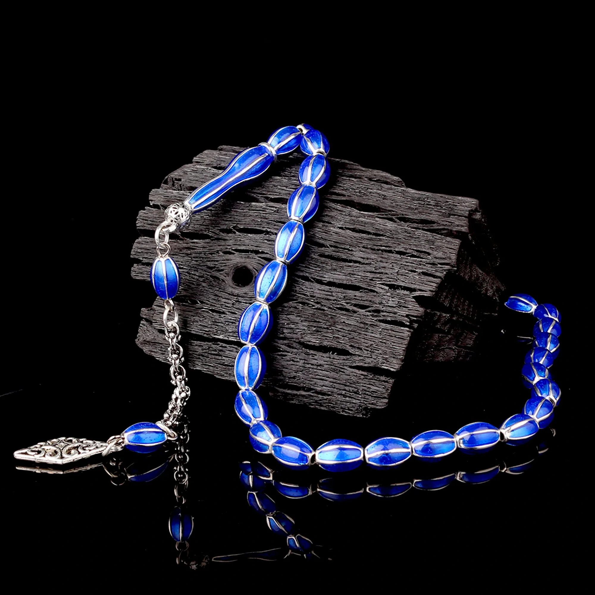 Gece Mavisi Mine İşlemeli Metal 6 Yarma Model Tesbih Hakkında