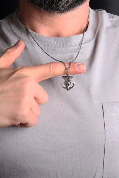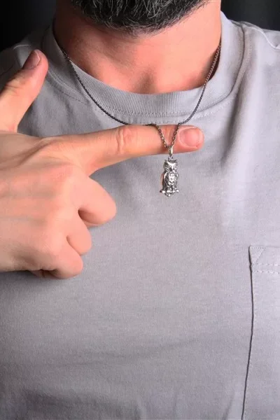 Aynı şekilde, kişisel sembollerin öne çıktığı kolyeler, son yıllarda erkeklerin tarzlarını kişiselleştirme eğilimleri doğrultusunda sıklıkla tercih edilmektedir. Bu tasarımlar, bir yandan maskülen bir duruş sergilerken, diğer yandan anlam yüklü detaylarla tarzınıza derinlik kazandırır. Örneğin, ok, kılıç, kurukafa, aslan, pusula, kartal, baykuş gibi sembollerle zenginleştirilen gümüş kolyeler, yalnızca bir aksesuar değil, aynı zamanda özgürlüğünüzün bir ifadesidir. Bu bağlamda, koleksiyonlarındaki her bir parça bir hikaye anlatır.
