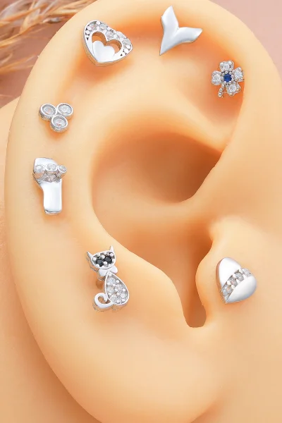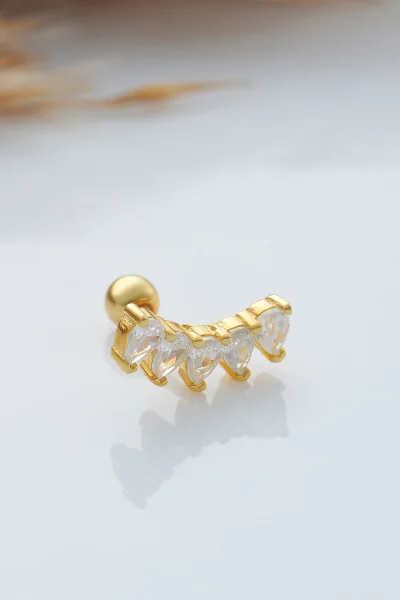 925 Ayar Kalp Motifli Taşlı Minimal Tragus Piercing