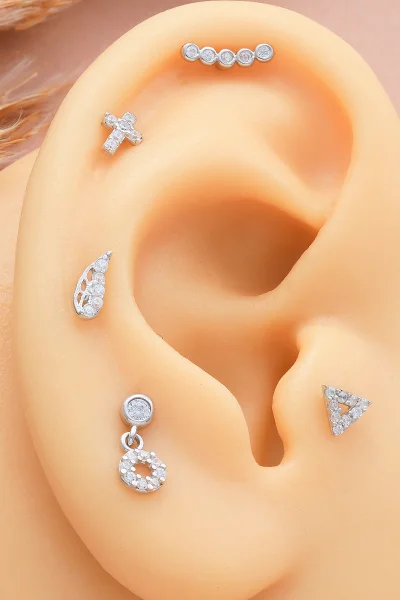 925 Ayar Tek Taş Modeli Minimal Tragus Piercing
