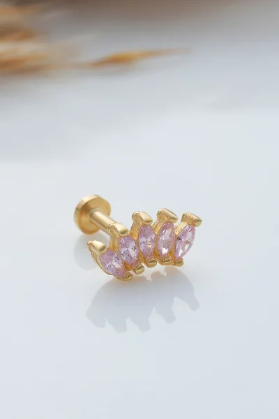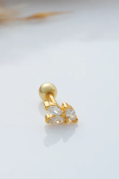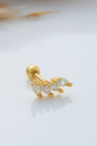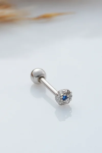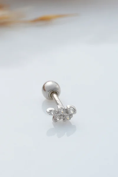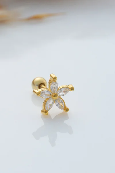 925 Ayar Markiz Taşlı Çiçek Motifli Minimal Tragus Piercing