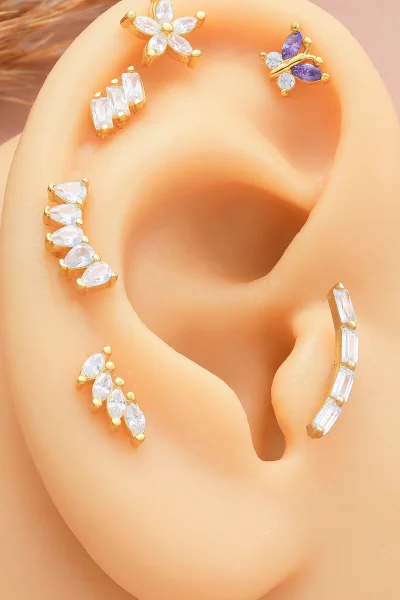 925 Ayar Baget Taşlı Minimal Tragus Piercing