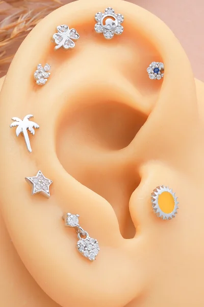 925 Ayar Terlik Motifli Minimal Tragus Piercing