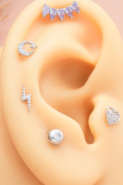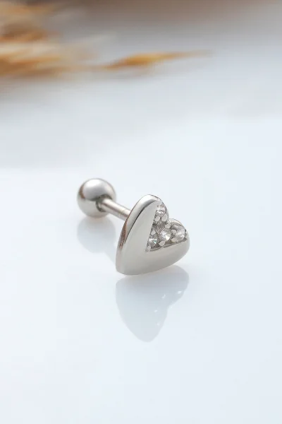 925 Ayar Kalp Motifli Taşlı Minimal Tragus Piercing