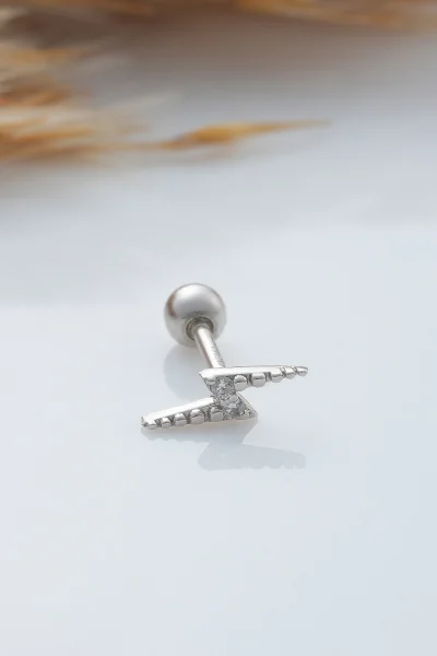 925 Ayar Şimşek Motifli Taşlı Minimal Tragus Piercing