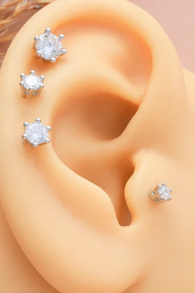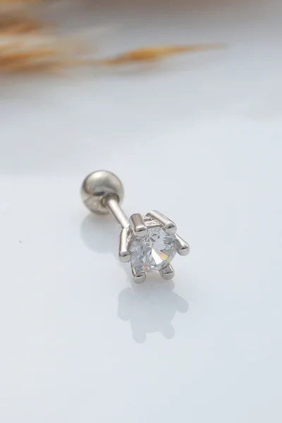 925 Ayar Tek Taş Modeli Minimal Tragus Piercing