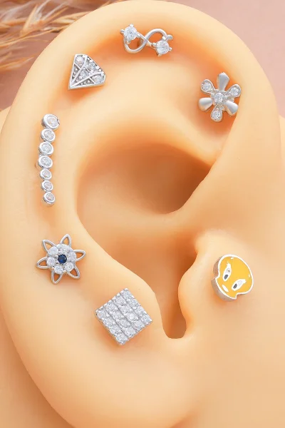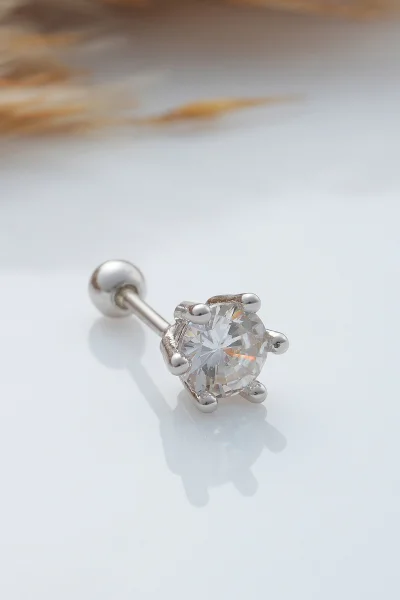925 Ayar Tek Taş Minimal Tragus Piercing