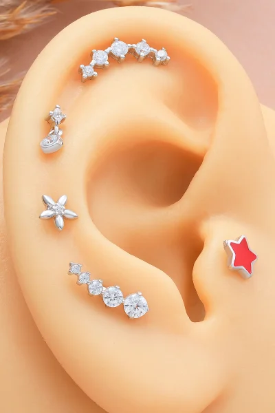 925 Ayar Zirkon Taşlı Minimal Tragus Piercing
