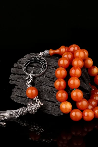 Gümüş Püsküllü Sarı Renk Sıkma Kehribar Tesbih Hakkında