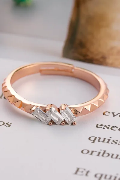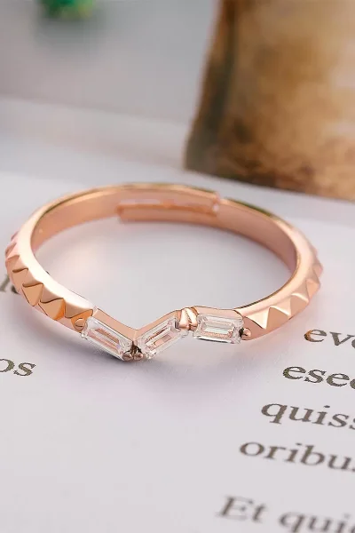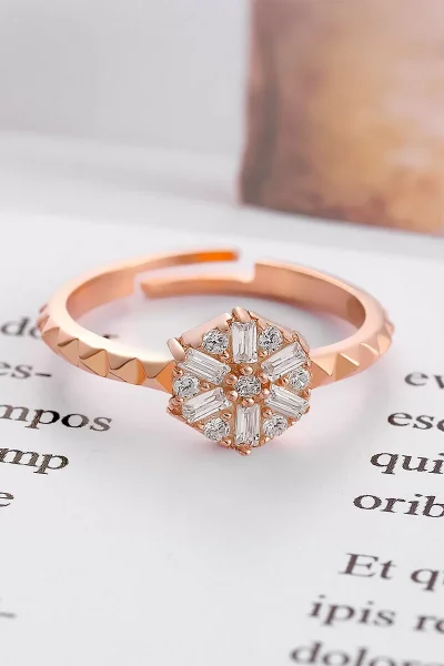 925 Ayar Baget Zirkon Taş Süslemeli Ayarlanabilir GümüşYüzük Rose