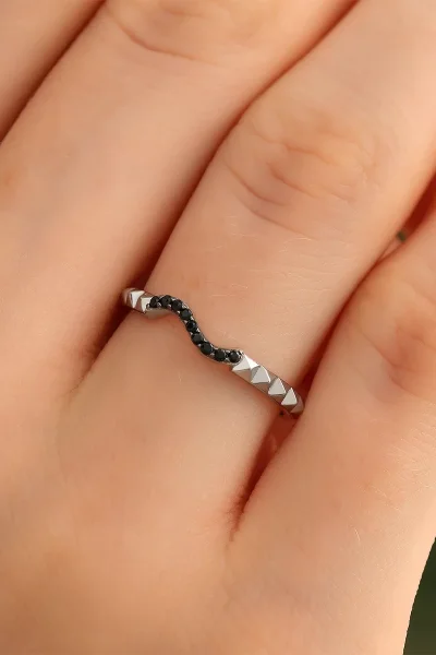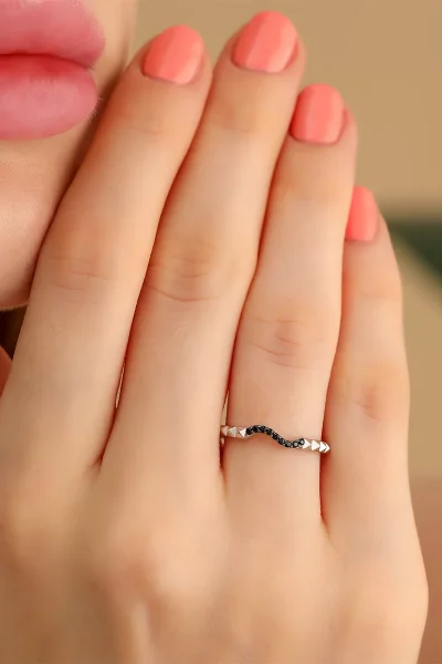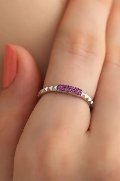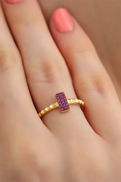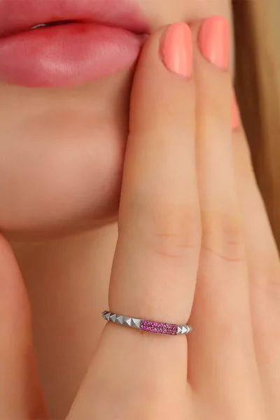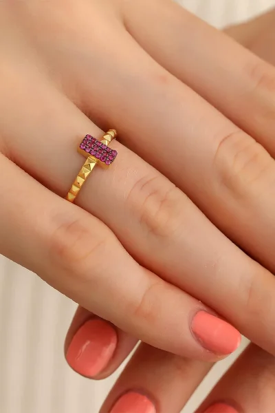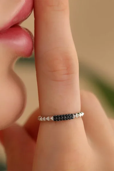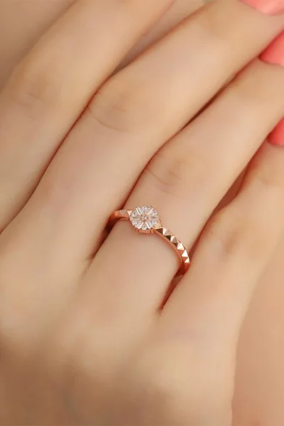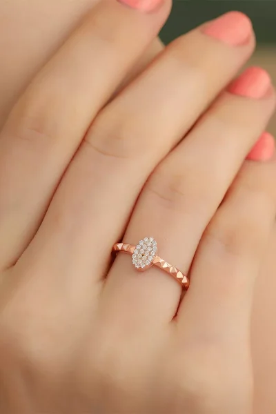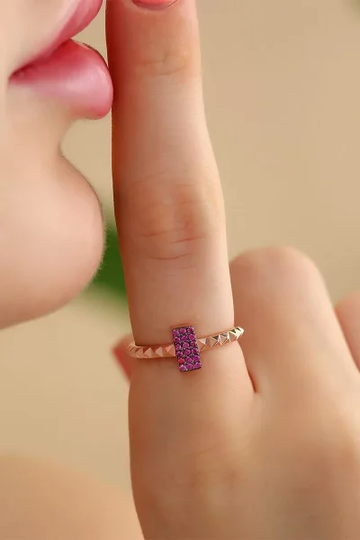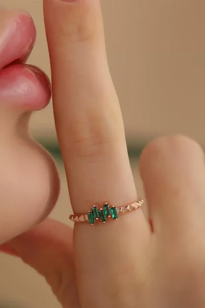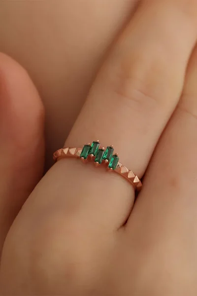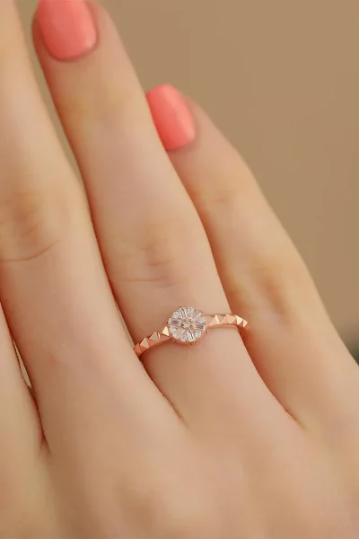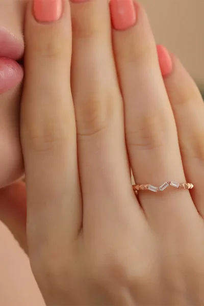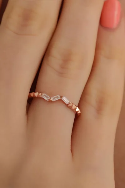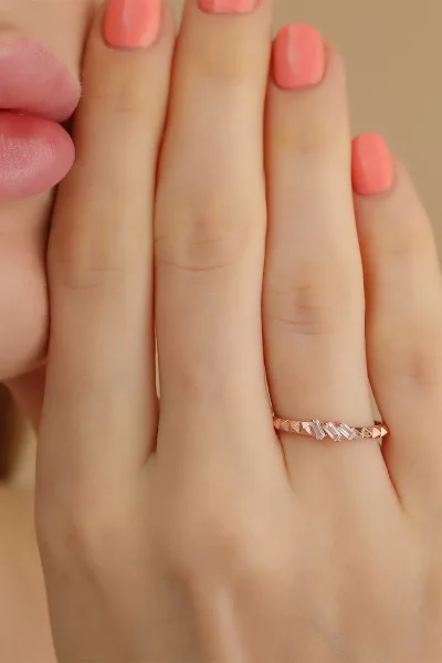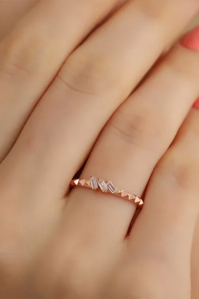 925 Ayar Zirkon Taş Süslemeli Baget Gümüş Yüzük Rose