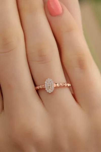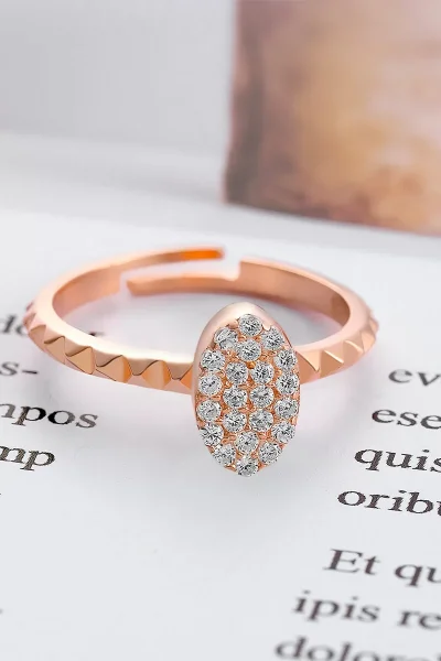 925 Ayar Gümüş Ayarlanabilir Elips Yüzük Rose