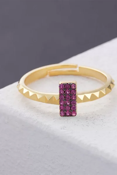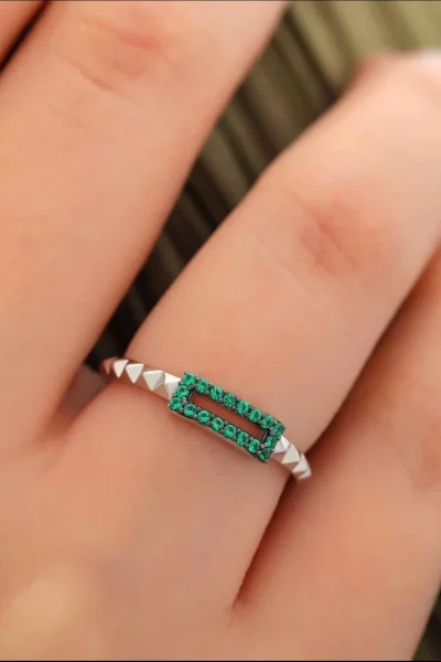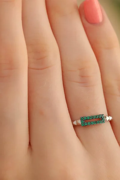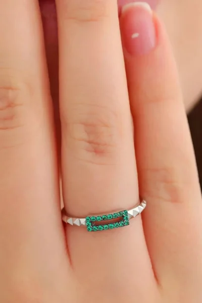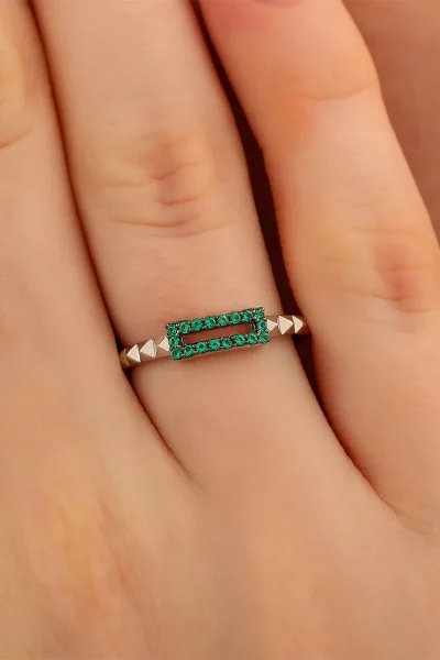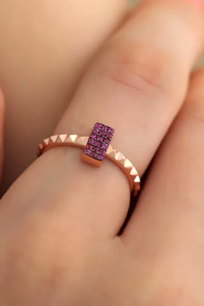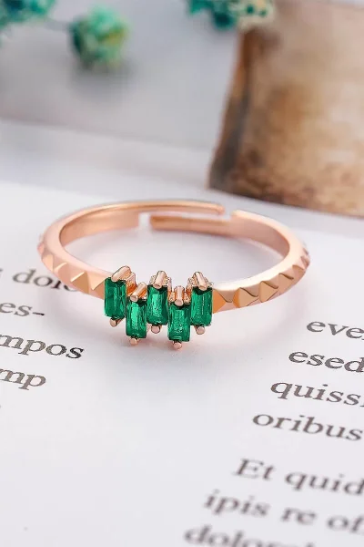 925 Ayar Zirkon Taş Dikdörtgen Ayarlanabilir Gümüş Yüzük Rose