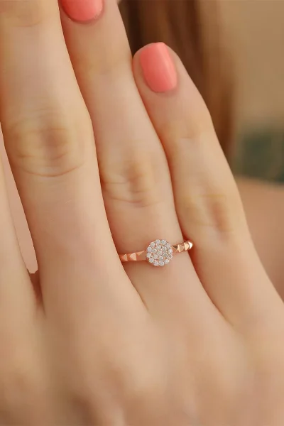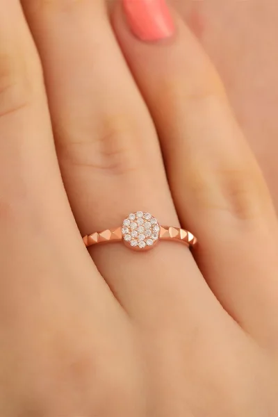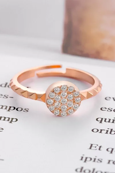 925 Ayar Zirkon Taş Ayarlanabilir Gümüş Yüzük Rose