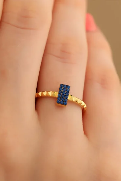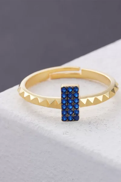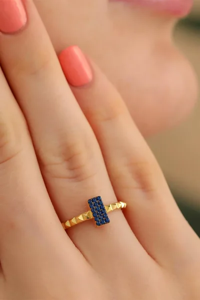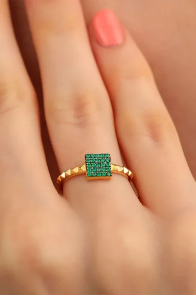 925 Ayar Zirkon Taş Dikdörtgen Ayarlanabilir Gümüş Yüzük Altın Kaplama